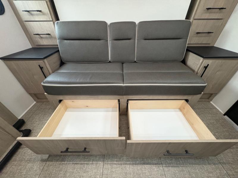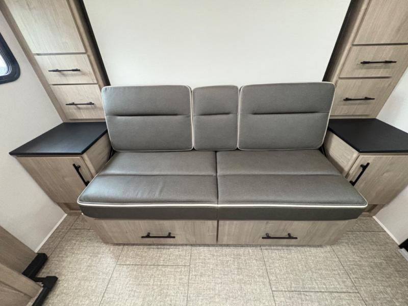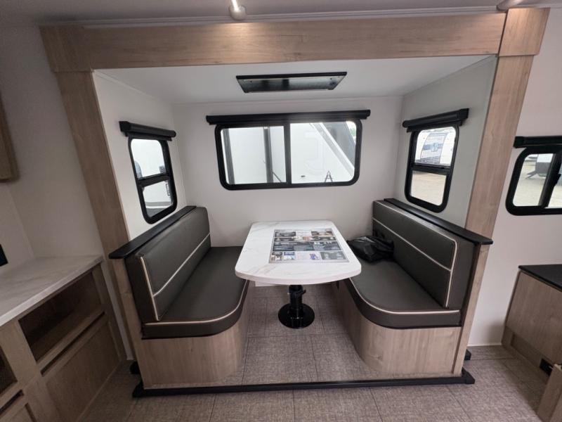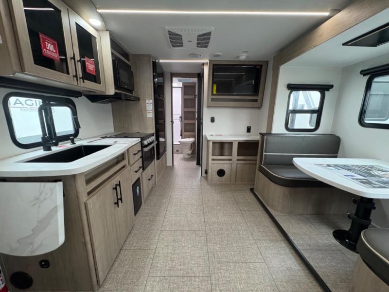 This Imagine XLS travel trailer has theater seating and a booth dinette that you can use any time you need a little break from the outdoors. If you want to come in and grab a coffee, put together a puzzle, or work on your itinerary for the week, just put up your feet and relax. You could even switch on the LED HDTV if you want a little entertainment. The front queen-size bed has a privacy curtain that you can draw to create a semi-private bedroom, and in the back of the trailer you will find the rest of your amenities, like the kitchen and the bathroom. The large slide makes it easy to enjoy spending your time indoors, but if you do want to get back outside, you can sit underneath the 18' electric awning for some shade.