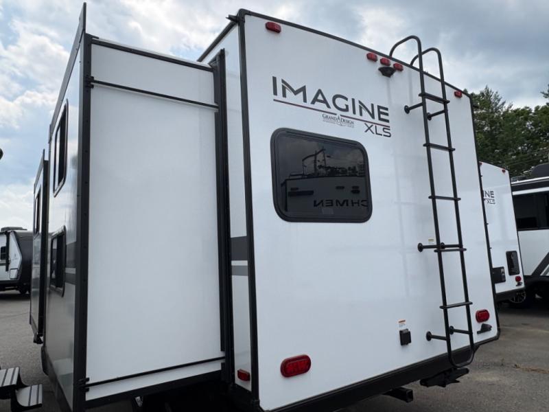Let your imagination run wild with the possibilities that the Grand Design Imagine XLS travel trailer can provide! The Imagine XLS has been built with oversized tank capacities, an extra-large 2" fresh water drain valve, a ducted A/C system, a power tongue jack, and a heated and enclosed underbelly with suspended tanks. There is a designated heat duct to the subfloor and a residential ductless heating system throughout. For outdoor adventures, the electric awning with LED lights will enable you to stay protected, and the Tuff-Ply pass-thru flooring will withstand your many adventures. You will also love the XLS Solar Package that comes with a 180W roof mounted solar panel, a 40 Amp charge controller, a 12V 10 cu. ft. refrigerator, and roof mounted quick connect plugs!