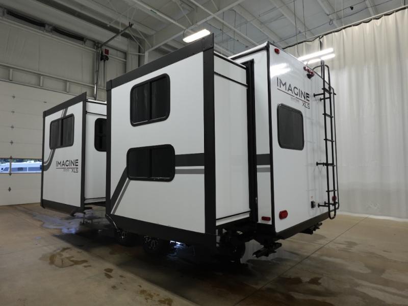 Let your imagination run wild with the possibilities that the Grand Design Imagine XLS travel trailer can provide! The Imagine XLS has been built with oversized tank capacities, an extra-large 2" fresh water drain valve, a ducted A/C system, a power tongue jack, and a heated and enclosed underbelly with suspended tanks. There is a designated heat duct to the subfloor and a residential ductless heating system throughout. For outdoor adventures, the electric awning with LED lights will enable you to stay protected, and the Tuff-Ply pass-thru flooring will withstand your many adventures. You will also love the XLS Solar Package that comes with a 180W roof mounted solar panel, a 40 Amp charge controller, a 12V 10 cu. ft. refrigerator, and roof mounted quick connect plugs!