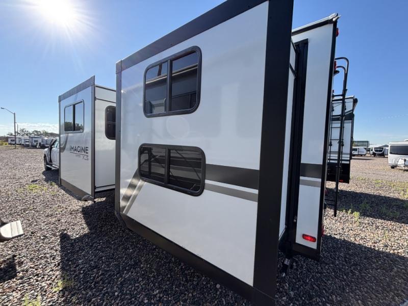 Let your imagination run wild with the possibilities that the Grand Design Imagine XLS travel trailer can provide! The Imagine XLS has been built with oversized tank capacities, an extra-large 2" fresh water drain valve, a ducted A/C system, a power tongue jack, and a heated and enclosed underbelly with suspended tanks. There is a designated heat duct to the subfloor and a residential ductless heating system throughout. For outdoor adventures, the electric awning with LED lights will enable you to stay protected, and the Tuff-Ply pass-thru flooring will withstand your many adventures. You will also love the XLS Solar Package that comes with a 180W roof mounted solar panel, a 40 Amp charge controller, a 12V 10 cu. ft. refrigerator, and roof mounted quick connect plugs!