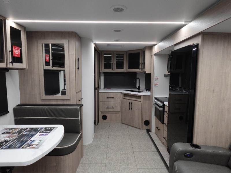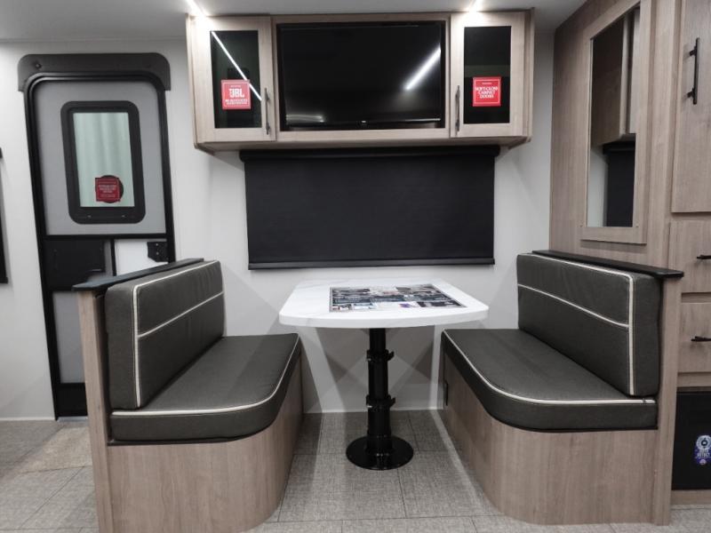 This Imagine XLS travel trailer has theater seating and a booth dinette that you can use any time you need a little break from the outdoors. If you want to come in and grab a coffee, put together a puzzle, or work on your itinerary for the week, just put up your feet and relax. You could even switch on the LED HDTV if you want a little entertainment. The front queen-size bed has a privacy curtain that you can draw to create a semi-private bedroom, and in the back of the trailer you will find the rest of your amenities, like the kitchen and the bathroom. The large slide makes it easy to enjoy spending your time indoors, but if you do want to get back outside, you can sit underneath the 18' electric awning for some shade.