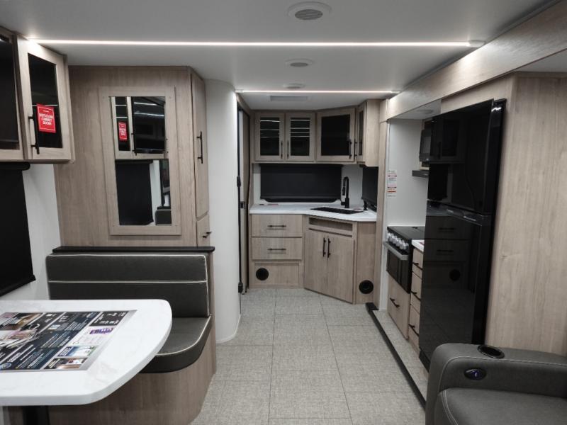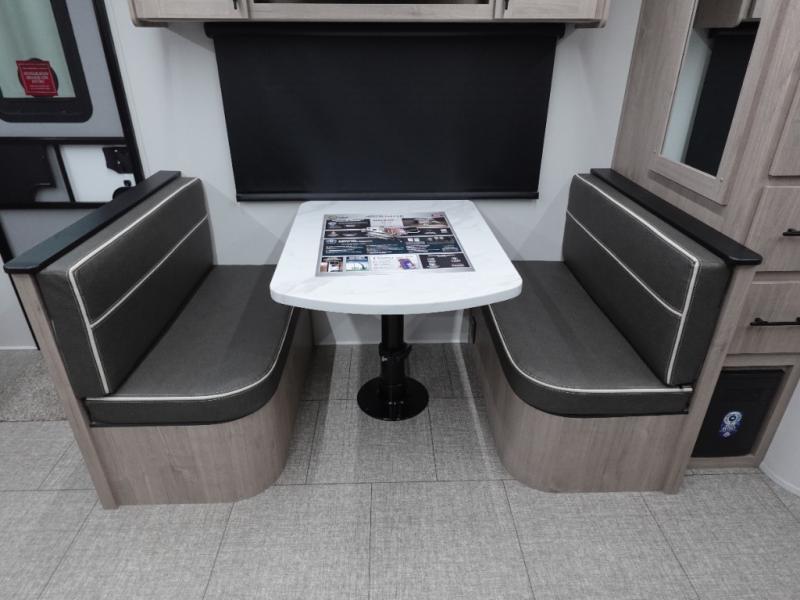 This Imagine XLS travel trailer has theater seating and a booth dinette that you can use any time you need a little break from the outdoors. If you want to come in and grab a coffee, put together a puzzle, or work on your itinerary for the week, just put up your feet and relax. You could even switch on the LED HDTV if you want a little entertainment. The front queen-size bed has a privacy curtain that you can draw to create a semi-private bedroom, and in the back of the trailer you will find the rest of your amenities, like the kitchen and the bathroom. The large slide makes it easy to enjoy spending your time indoors, but if you do want to get back outside, you can sit underneath the 18' electric awning for some shade.