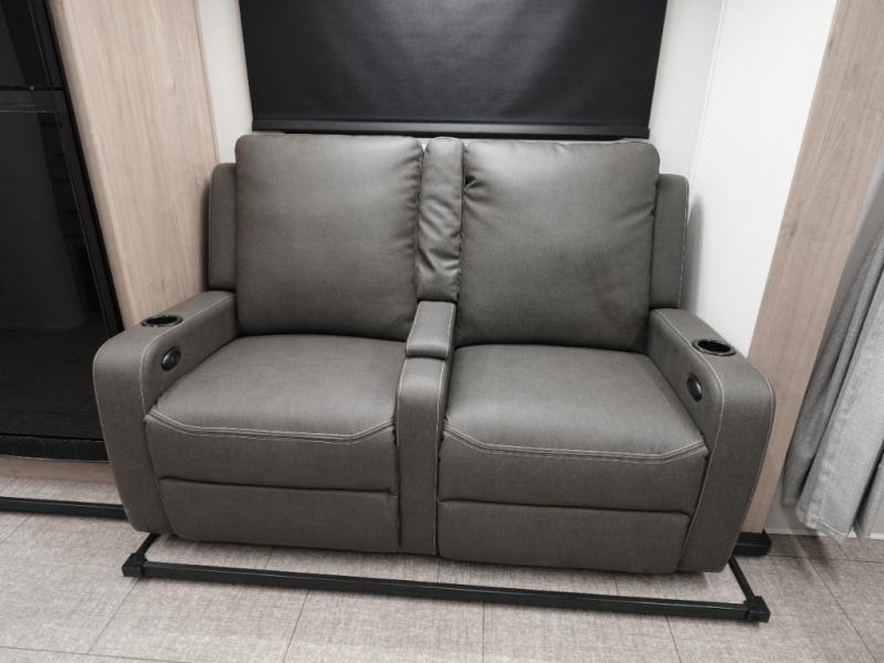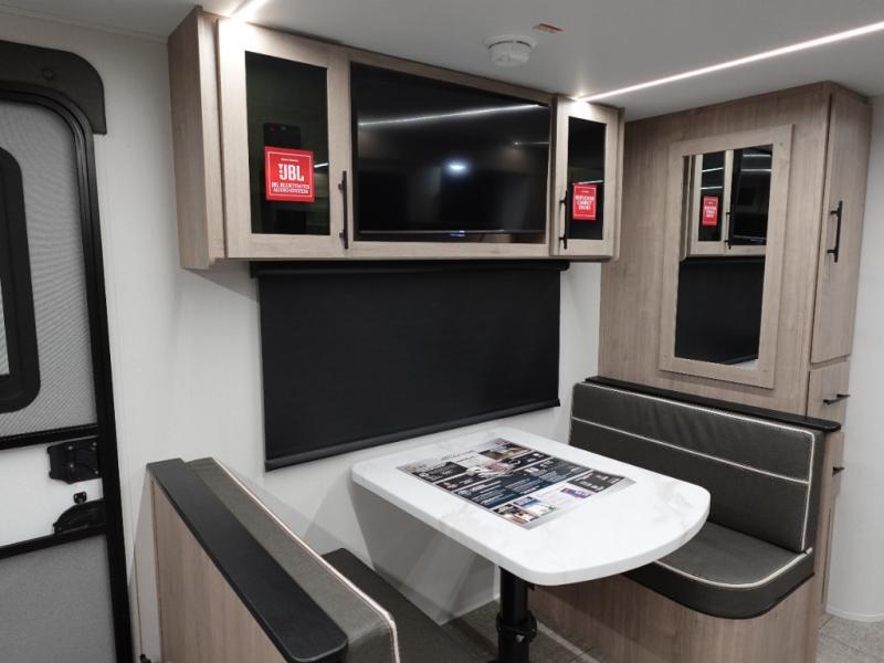This Imagine XLS travel trailer has theater seating and a booth dinette that you can use any time you need a little break from the outdoors. If you want to come in and grab a coffee, put together a puzzle, or work on your itinerary for the week, just put up your feet and relax. You could even switch on the LED HDTV if you want a little entertainment. The front queen-size bed has a privacy curtain that you can draw to create a semi-private bedroom, and in the back of the trailer you will find the rest of your amenities, like the kitchen and the bathroom. The large slide makes it easy to enjoy spending your time indoors, but if you do want to get back outside, you can sit underneath the 18' electric awning for some shade.