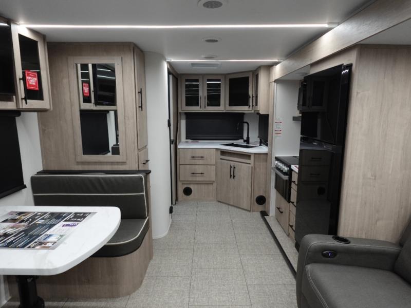 This Imagine XLS travel trailer has theater seating and a booth dinette that you can use any time you need a little break from the outdoors. If you want to come in and grab a coffee, put together a puzzle, or work on your itinerary for the week, just put up your feet and relax. You could even switch on the LED HDTV if you want a little entertainment. The front queen-size bed has a privacy curtain that you can draw to create a semi-private bedroom, and in the back of the trailer you will find the rest of your amenities, like the kitchen and the bathroom. The large slide makes it easy to enjoy spending your time indoors, but if you do want to get back outside, you can sit underneath the 18' electric awning for some shade.