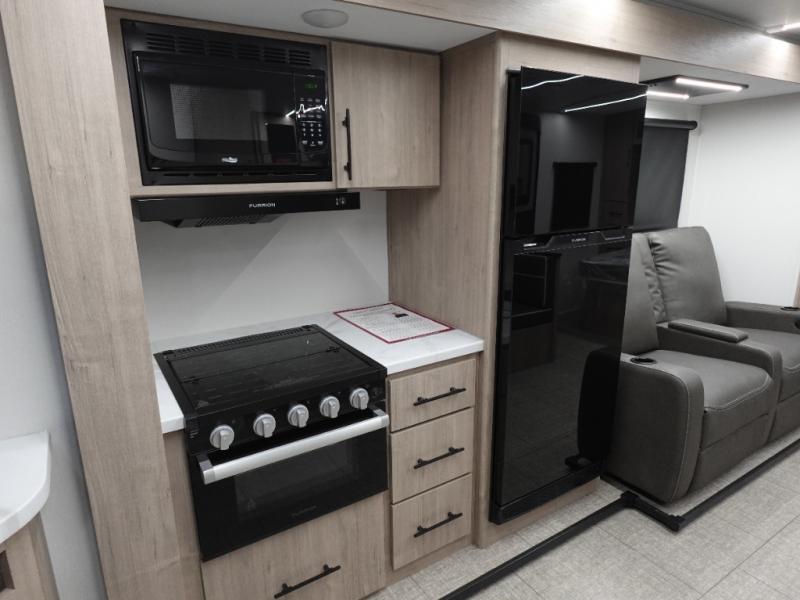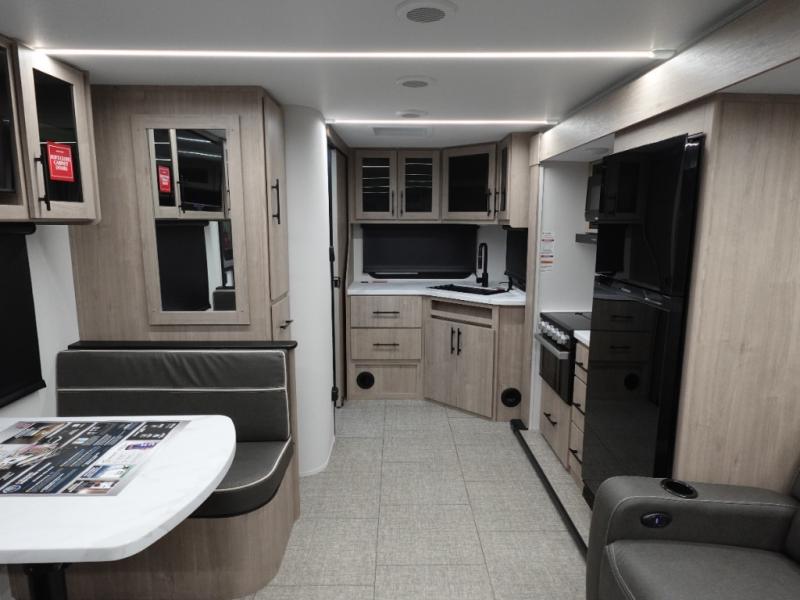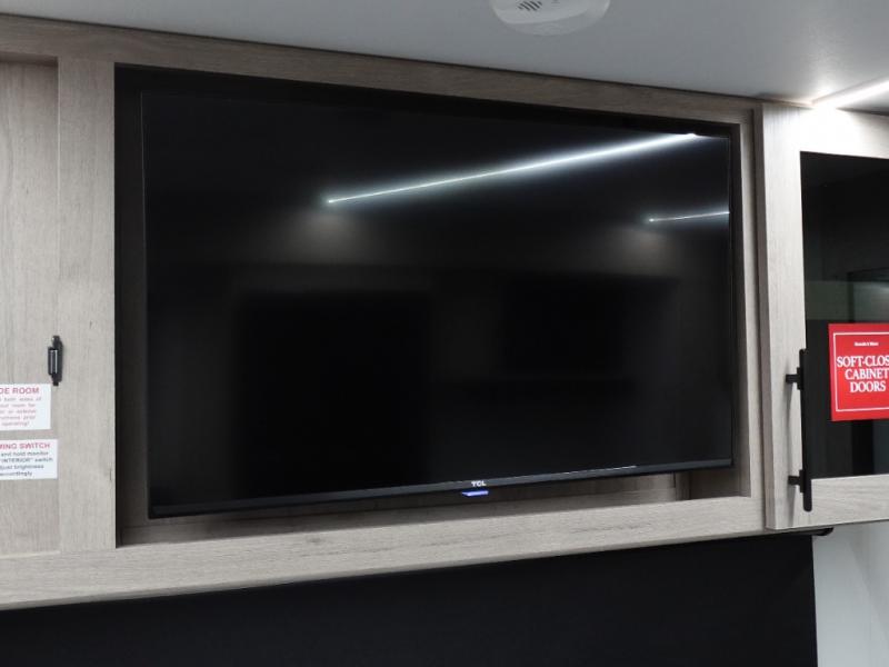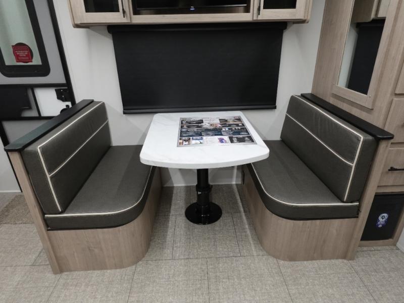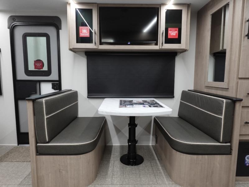 This Imagine XLS travel trailer has theater seating and a booth dinette that you can use any time you need a little break from the outdoors. If you want to come in and grab a coffee, put together a puzzle, or work on your itinerary for the week, just put up your feet and relax. You could even switch on the LED HDTV if you want a little entertainment. The front queen-size bed has a privacy curtain that you can draw to create a semi-private bedroom, and in the back of the trailer you will find the rest of your amenities, like the kitchen and the bathroom. The large slide makes it easy to enjoy spending your time indoors, but if you do want to get back outside, you can sit underneath the 18' electric awning for some shade.