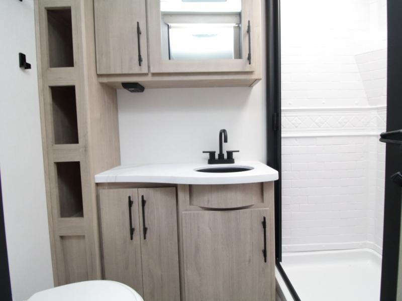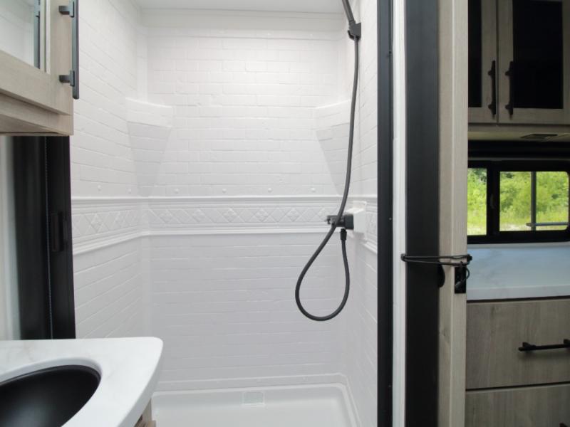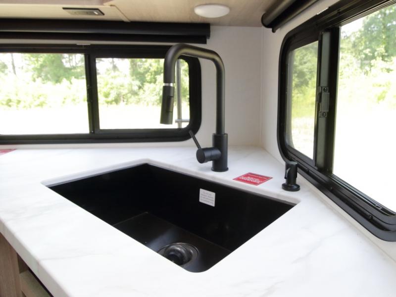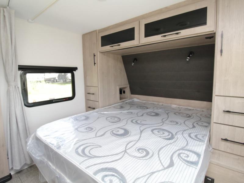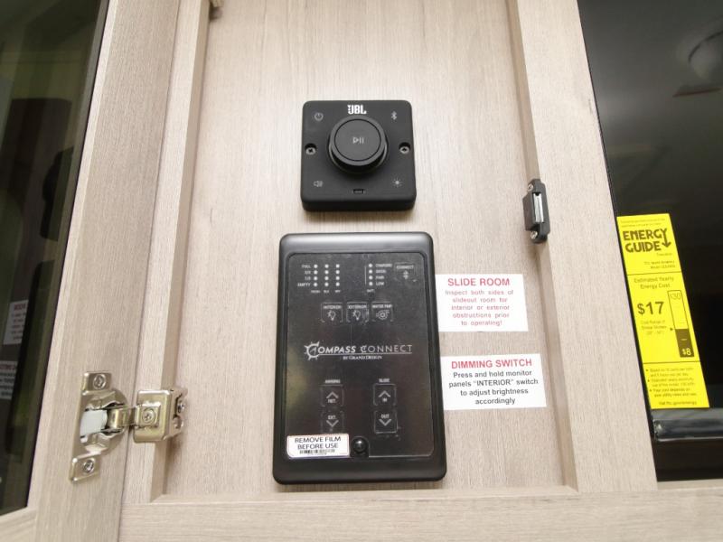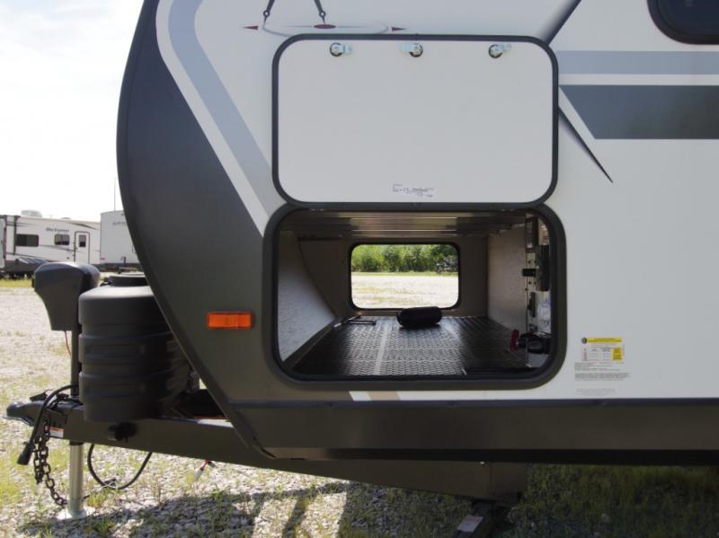 A large slide-out expands the interior space, making it easy to cook, dine, and unwind in the fully equipped rear kitchen and bathroom. When you’re ready to step outside, the 18' electric awning provides shade and shelter, allowing you to enjoy the outdoors in comfort.