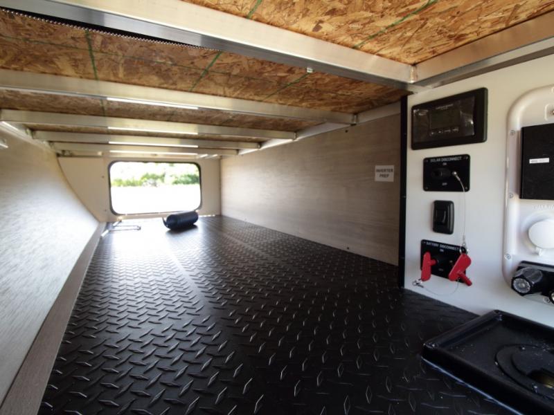XLS Solar Package, featuring a 180W solar panel, 40 Amp charge controller, and roof-mounted quick connect plugs