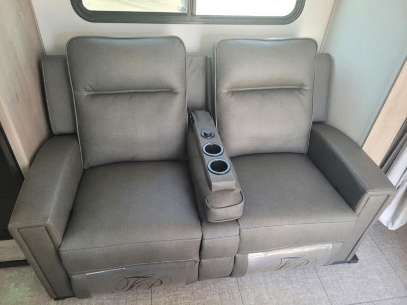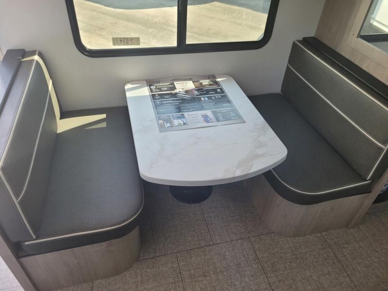 This Imagine XLS travel trailer has theater seating and a booth dinette that you can use any time you need a little break from the outdoors. If you want to come in and grab a coffee, put together a puzzle, or work on your itinerary for the week, just put up your feet and relax. You could even switch on the LED HDTV if you want a little entertainment. The front queen-size bed has a privacy curtain that you can draw to create a semi-private bedroom, and in the back of the trailer you will find the rest of your amenities, like the kitchen and the bathroom. The large slide makes it easy to enjoy spending your time indoors, but if you do want to get back outside, you can sit underneath the 18' electric awning for some shade.