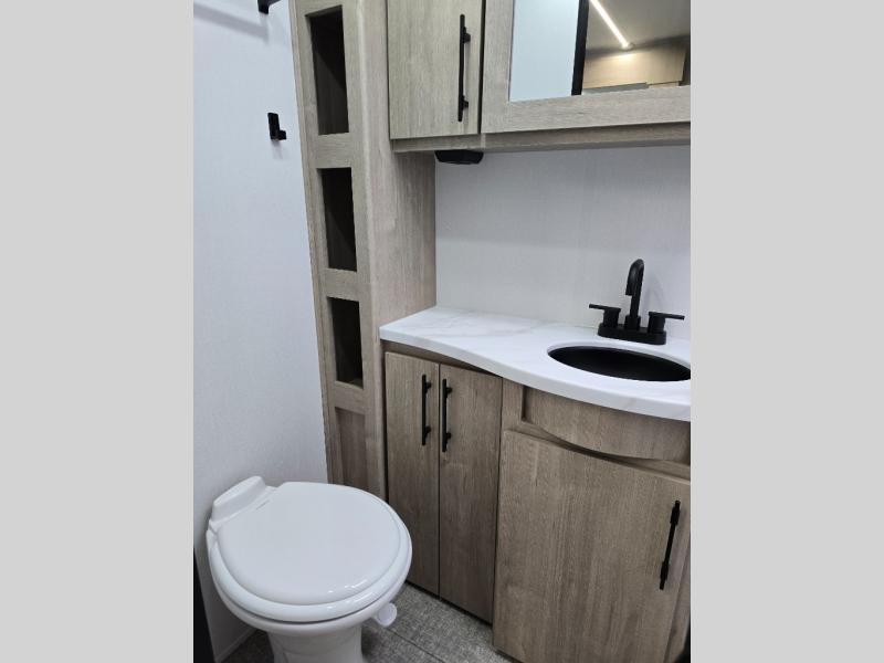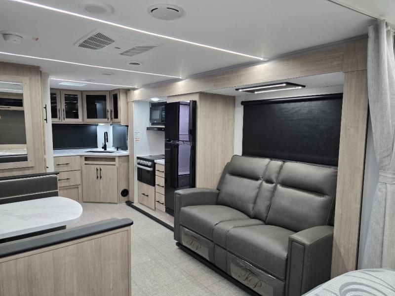 This Imagine XLS travel trailer has theater seating and a booth dinette that you can use any time you need a little break from the outdoors. If you want to come in and grab a coffee, put together a puzzle, or work on your itinerary for the week, just put up your feet and relax. You could even switch on the LED HDTV if you want a little entertainment. The front queen-size bed has a privacy curtain that you can draw to create a semi-private bedroom, and in the back of the trailer you will find the rest of your amenities, like the kitchen and the bathroom. The large slide makes it easy to enjoy spending your time indoors, but if you do want to get back outside, you can sit underneath the 18' electric awning for some shade.