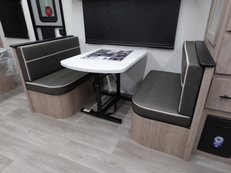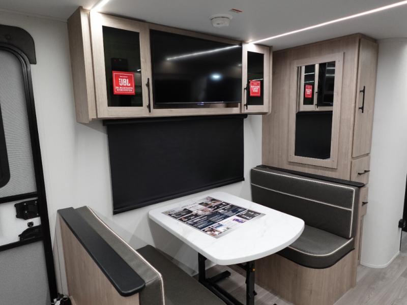 This Imagine XLS travel trailer has theater seating and a booth dinette that you can use any time you need a little break from the outdoors. If you want to come in and grab a coffee, put together a puzzle, or work on your itinerary for the week, just put up your feet and relax. You could even switch on the LED HDTV if you want a little entertainment. The front queen-size bed has a privacy curtain that you can draw to create a semi-private bedroom, and in the back of the trailer you will find the rest of your amenities, like the kitchen and the bathroom. The large slide makes it easy to enjoy spending your time indoors, but if you do want to get back outside, you can sit underneath the 18' electric awning for some shade.