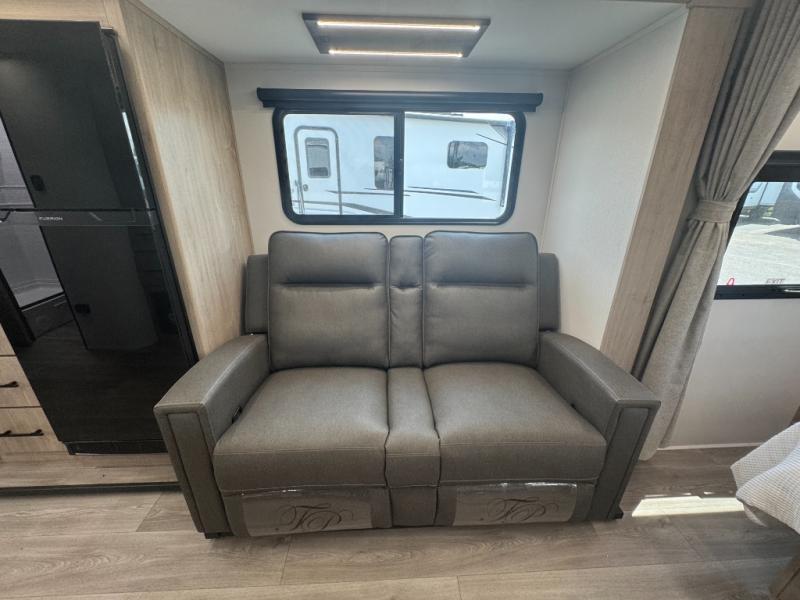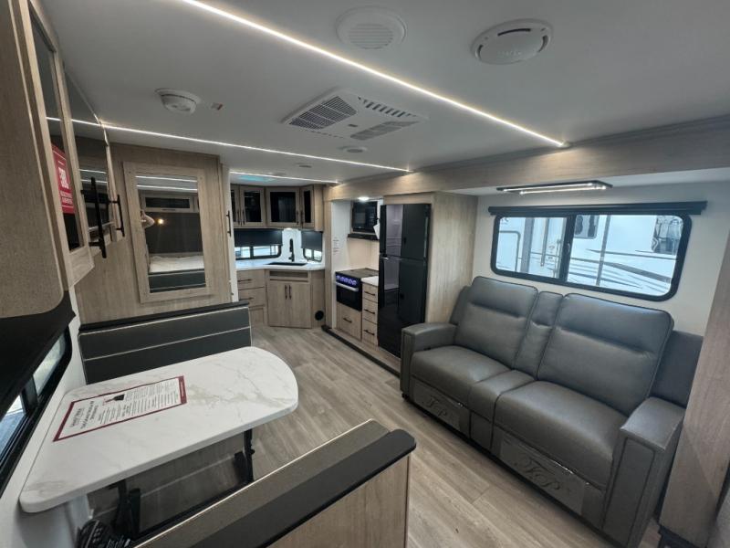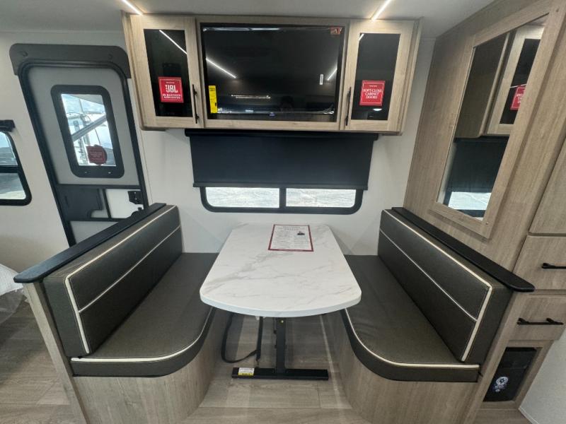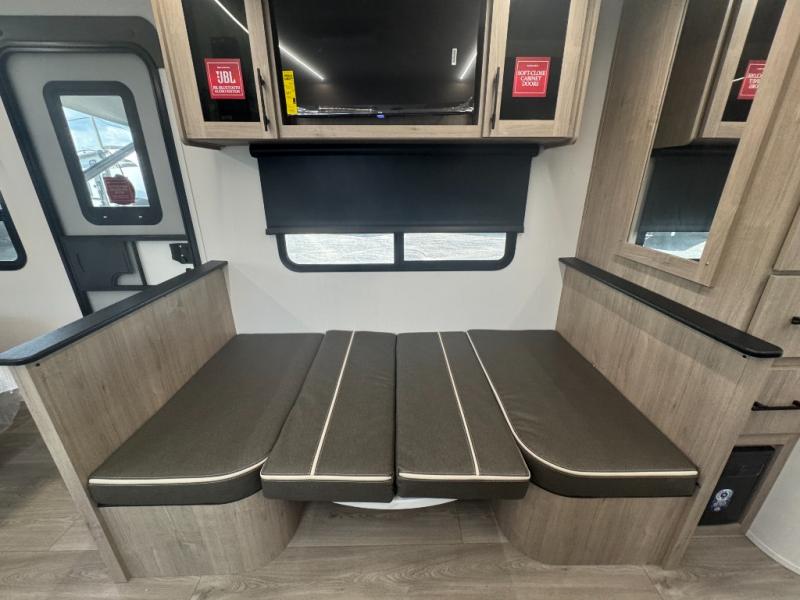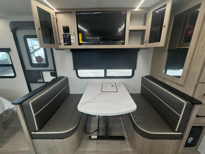 This Imagine XLS travel trailer has theater seating and a booth dinette that you can use any time you need a little break from the outdoors. If you want to come in and grab a coffee, put together a puzzle, or work on your itinerary for the week, just put up your feet and relax. You could even switch on the LED HDTV if you want a little entertainment. The front queen-size bed has a privacy curtain that you can draw to create a semi-private bedroom, and in the back of the trailer you will find the rest of your amenities, like the kitchen and the bathroom. The large slide makes it easy to enjoy spending your time indoors, but if you do want to get back outside, you can sit underneath the 18' electric awning for some shade.
