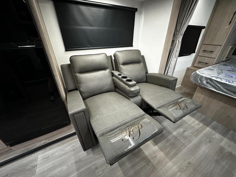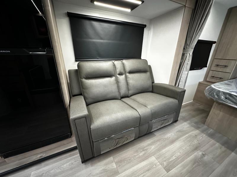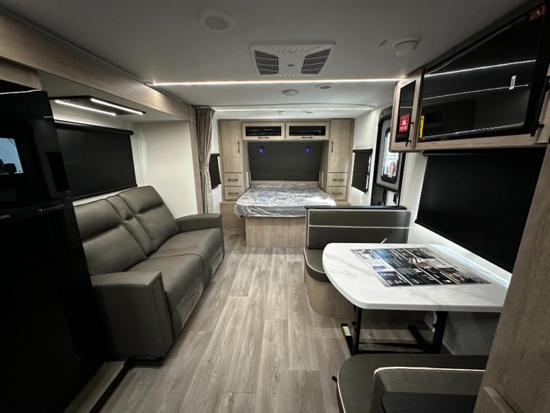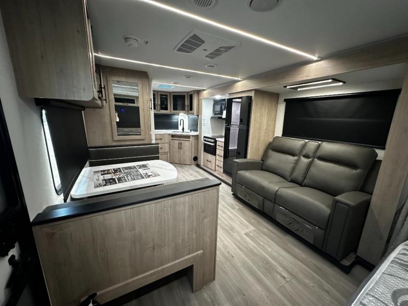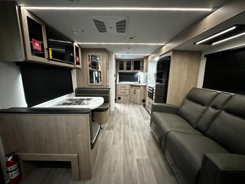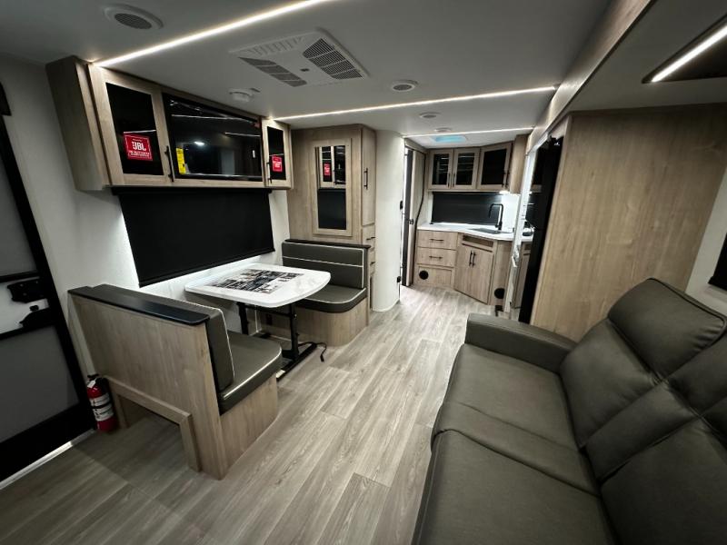 Step inside and immediately feel how open and inviting the layout is. The slide-out theater seating or optional tri-fold sofa expands the living space, creating a comfortable area to relax, watch TV, or enjoy a quiet evening indoors. Large windows bring in abundant natural light, making the entire interior feel bright, warm, and welcoming.