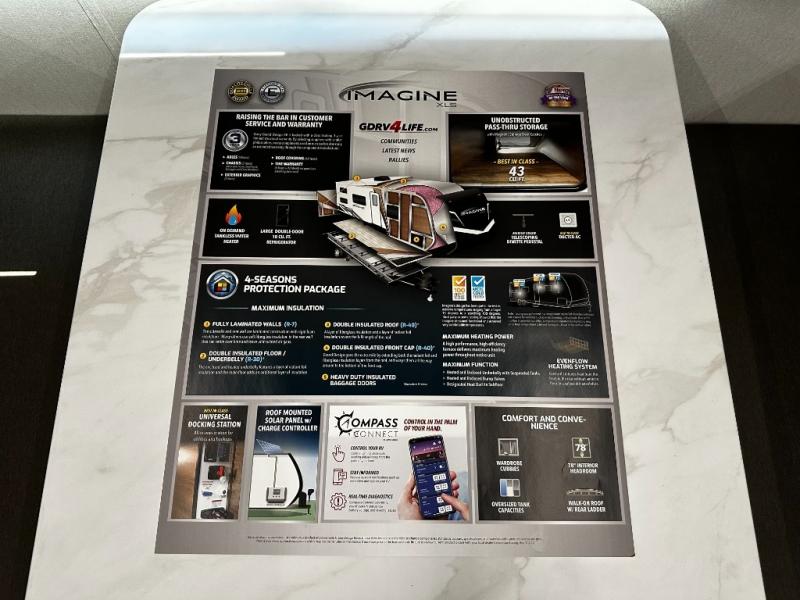 With Grand Design’s commitment to quality, the Imagine XLS 22MLE includes superior laminated construction, all-season insulation, and high-end components built to last. This trailer is lightweight enough for a wide range of tow vehicles but strong enough to handle countless adventures.