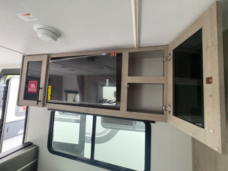 This Imagine XLS travel trailer has theater seating and a booth dinette that you can use any time you need a little break from the outdoors. If you want to come in and grab a coffee, put together a puzzle, or work on your itinerary for the week, just put up your feet and relax. You could even switch on the LED HDTV if you want a little entertainment. The front queen-size bed has a privacy curtain that you can draw to create a semi-private bedroom, and in the back of the trailer you will find the rest of your amenities, like the kitchen and the bathroom. The large slide makes it easy to enjoy spending your time indoors, but if you do want to get back outside, you can sit underneath the 18' electric awning for some shade.