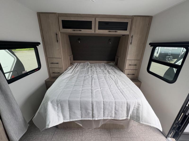 Let your imagination run wild with the possibilities that the Grand Design Imagine XLS travel trailer can provide! The Imagine XLS has been built with oversized tank capacities, an extra-large 2" fresh water drain valve, a ducted A/C system, a power tongue jack, and a heated and enclosed underbelly with suspended tanks. There is a designated heat duct to the subfloor and a residential ductless heating system throughout. For outdoor adventures, the electric awning with LED lights will enable you to stay protected, and the Tuff-Ply pass-thru flooring will withstand your many adventures. You will also love the XLS Solar Package that comes with a 180W roof mounted solar panel, a 40 Amp charge controller, a 12V 10 cu. ft. refrigerator, and roof mounted quick connect plugs!