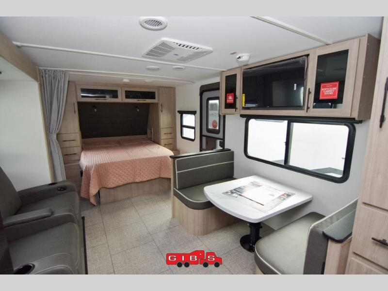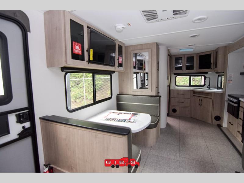 This Imagine XLS travel trailer has theater seating and a booth dinette that you can use any time you need a little break from the outdoors. If you want to come in and grab a coffee, put together a puzzle, or work on your itinerary for the week, just put up your feet and relax. You could even switch on the LED HDTV if you want a little entertainment. The front queen-size bed has a privacy curtain that you can draw to create a semi-private bedroom, and in the back of the trailer you will find the rest of your amenities, like the kitchen and the bathroom. The large slide makes it easy to enjoy spending your time indoors, but if you do want to get back outside, you can sit underneath the 18' electric awning for some shade.