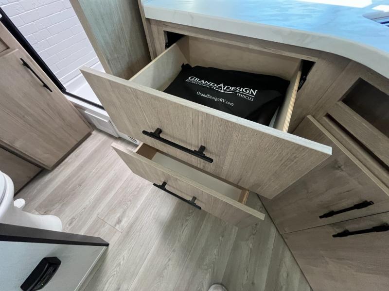 Let your imagination run wild with the possibilities that the Grand Design Imagine XLS travel trailer can provide! The Imagine XLS has been built with oversized tank capacities, an extra-large 2" fresh water drain valve, a ducted A/C system, a power tongue jack, and a heated and enclosed underbelly with suspended tanks. There is a designated heat duct to the subfloor and a residential ductless heating system throughout. For outdoor adventures, the electric awning with LED lights will enable you to stay protected, and the Tuff-Ply pass-thru flooring will withstand your many adventures. You will also love the XLS Solar Package that comes with a 180W roof mounted solar panel, a 40 Amp charge controller, a 12V 10 cu. ft. refrigerator, and roof mounted quick connect plugs!