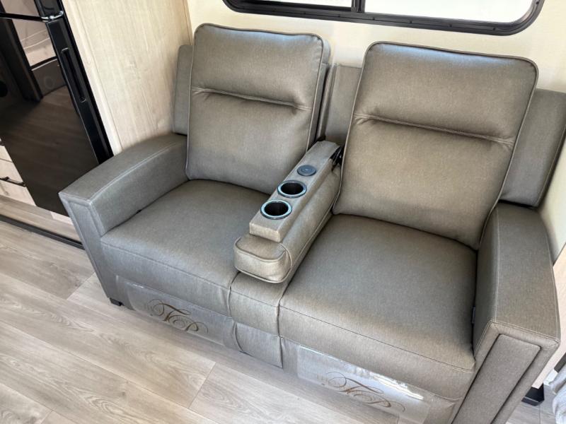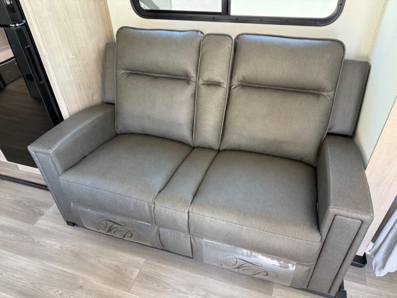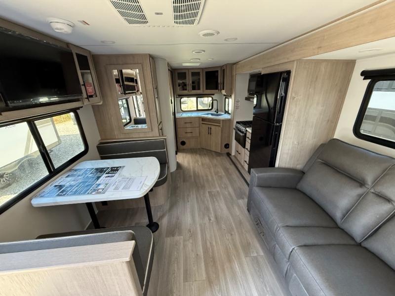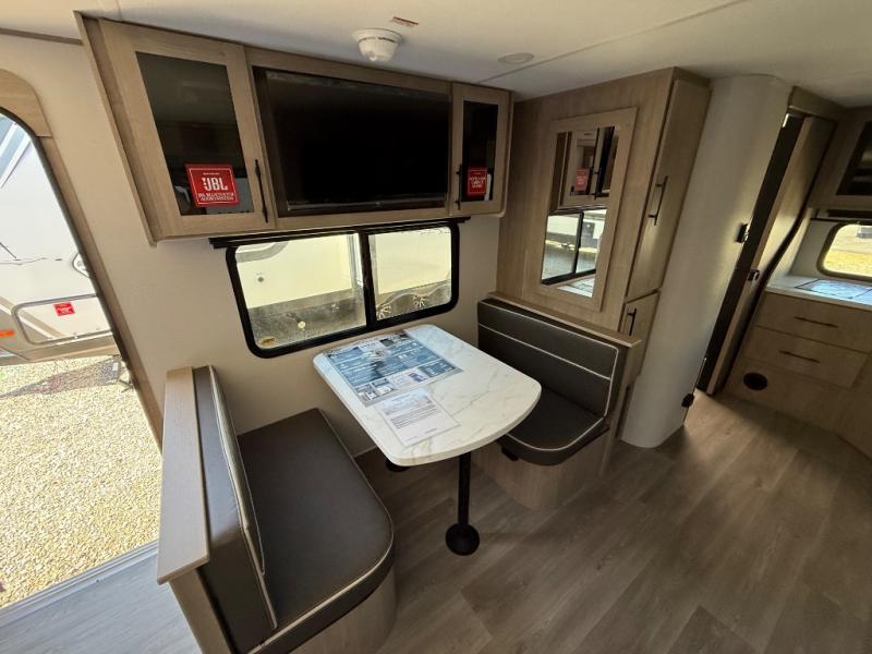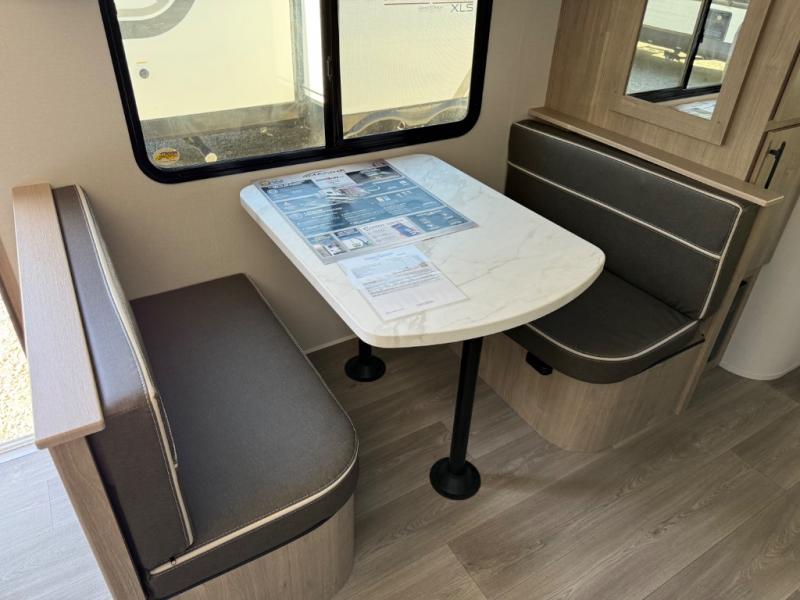 This Imagine XLS travel trailer has theater seating and a booth dinette that you can use any time you need a little break from the outdoors. If you want to come in and grab a coffee, put together a puzzle, or work on your itinerary for the week, just put up your feet and relax. You could even switch on the LED HDTV if you want a little entertainment. The front queen-size bed has a privacy curtain that you can draw to create a semi-private bedroom, and in the back of the trailer you will find the rest of your amenities, like the kitchen and the bathroom. The large slide makes it easy to enjoy spending your time indoors, but if you do want to get back outside, you can sit underneath the 18' electric awning for some shade.