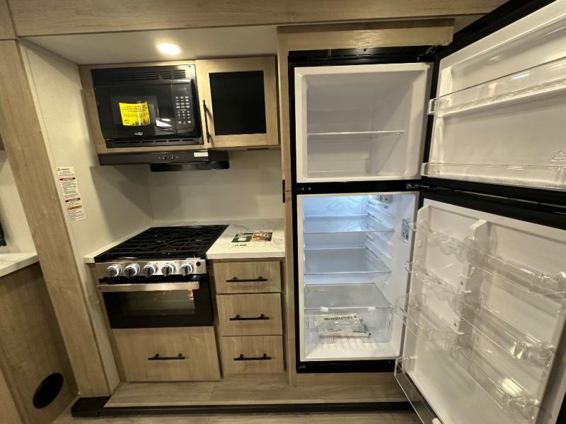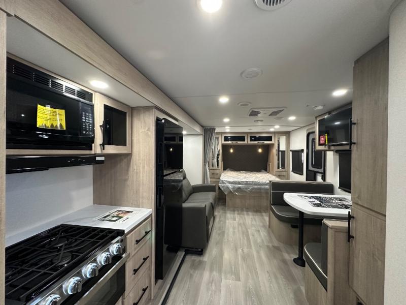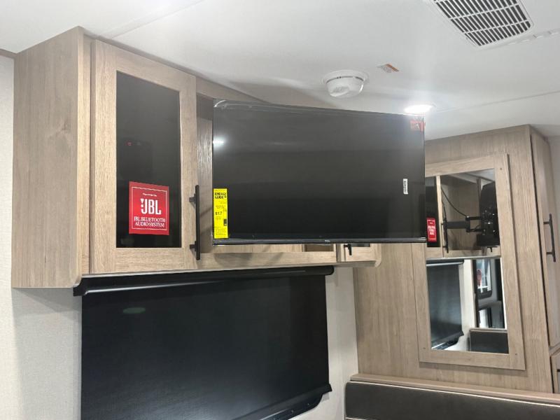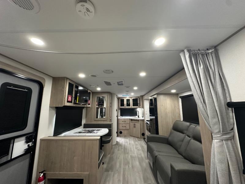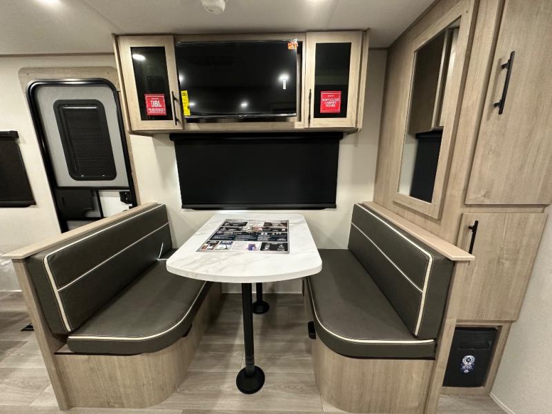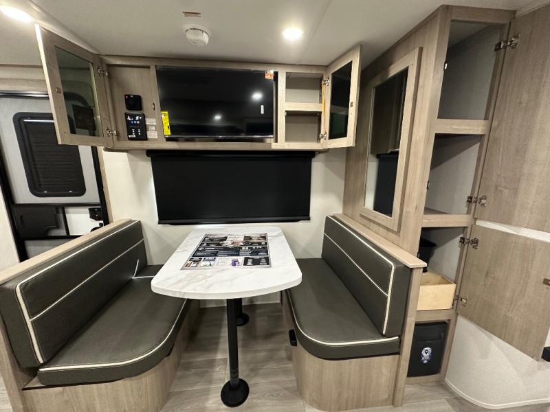 This Imagine XLS travel trailer has theater seating and a booth dinette that you can use any time you need a little break from the outdoors. If you want to come in and grab a coffee, put together a puzzle, or work on your itinerary for the week, just put up your feet and relax. You could even switch on the LED HDTV if you want a little entertainment. The front queen-size bed has a privacy curtain that you can draw to create a semi-private bedroom, and in the back of the trailer you will find the rest of your amenities, like the kitchen and the bathroom. The large slide makes it easy to enjoy spending your time indoors, but if you do want to get back outside, you can sit underneath the 18' electric awning for some shade.