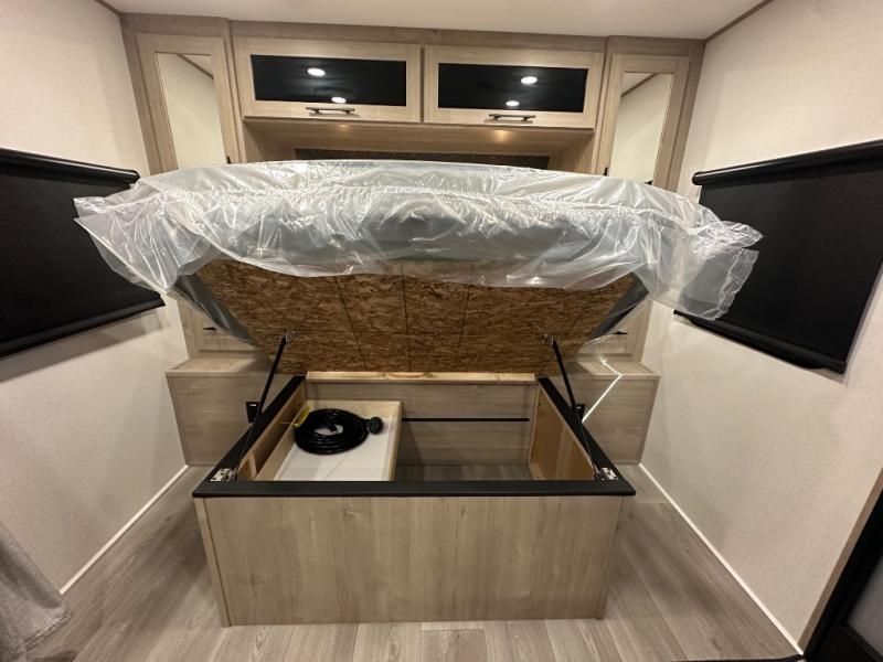 Let your imagination run wild with the possibilities that the Grand Design Imagine XLS travel trailer can provide! The Imagine XLS has been built with oversized tank capacities, an extra-large 2" fresh water drain valve, a ducted A/C system, a power tongue jack, and a heated and enclosed underbelly with suspended tanks. There is a designated heat duct to the subfloor and a residential ductless heating system throughout. For outdoor adventures, the electric awning with LED lights will enable you to stay protected, and the Tuff-Ply pass-thru flooring will withstand your many adventures. You will also love the XLS Solar Package that comes with a 180W roof mounted solar panel, a 40 Amp charge controller, a 12V 10 cu. ft. refrigerator, and roof mounted quick connect plugs!