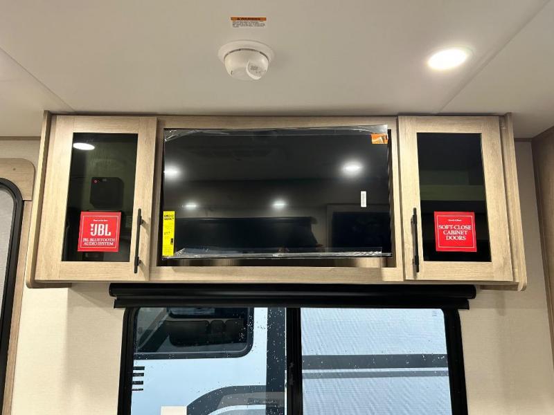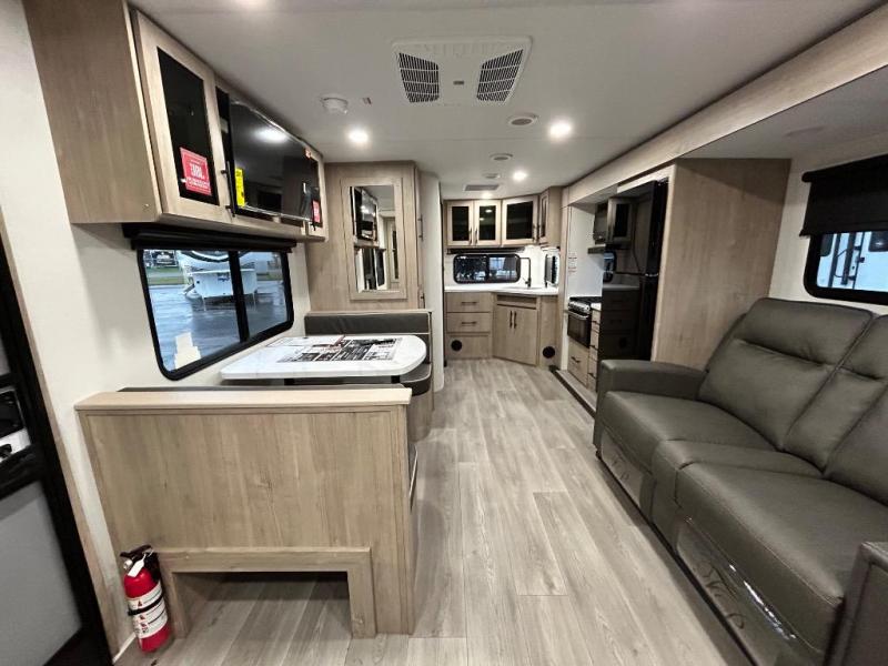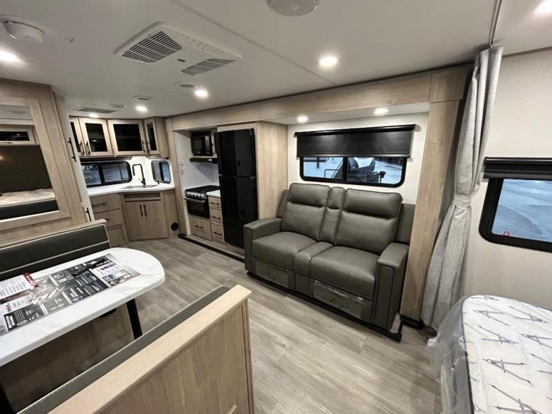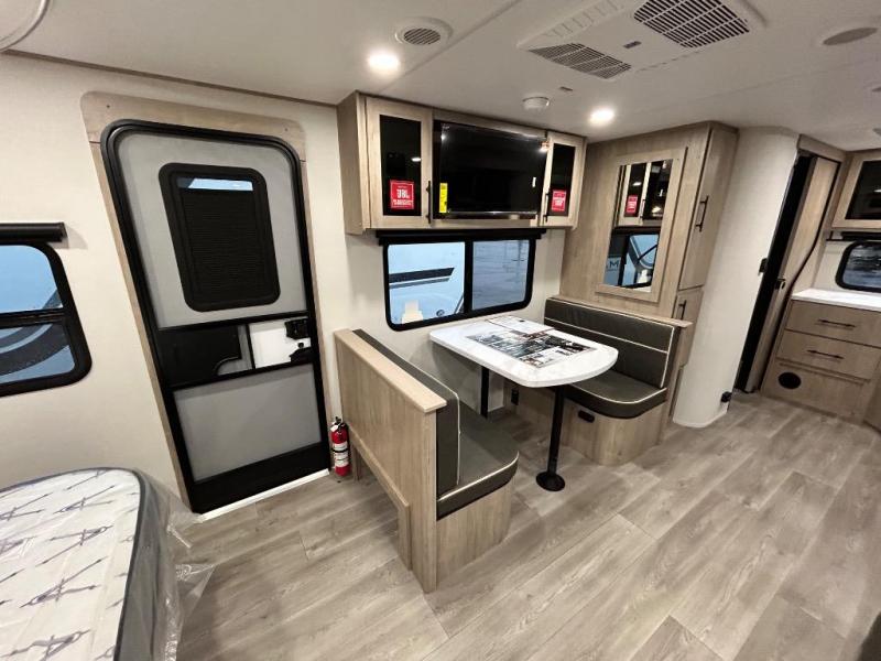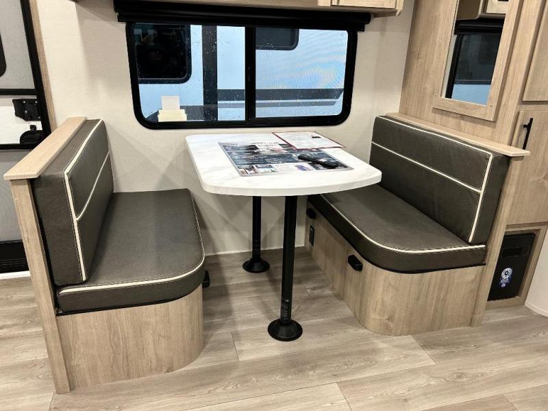 This Imagine XLS travel trailer has theater seating and a booth dinette that you can use any time you need a little break from the outdoors. If you want to come in and grab a coffee, put together a puzzle, or work on your itinerary for the week, just put up your feet and relax. You could even switch on the LED HDTV if you want a little entertainment. The front queen-size bed has a privacy curtain that you can draw to create a semi-private bedroom, and in the back of the trailer you will find the rest of your amenities, like the kitchen and the bathroom. The large slide makes it easy to enjoy spending your time indoors, but if you do want to get back outside, you can sit underneath the 18' electric awning for some shade.