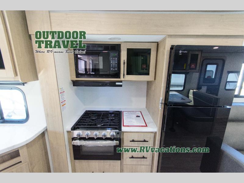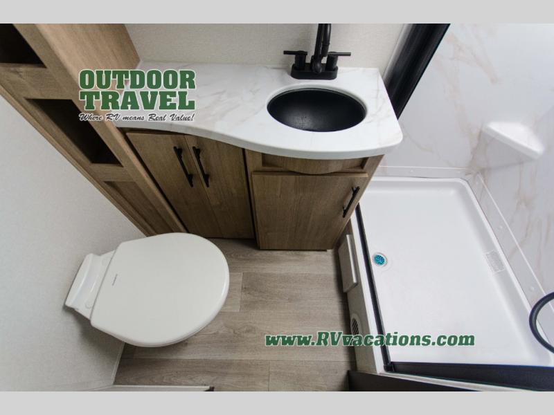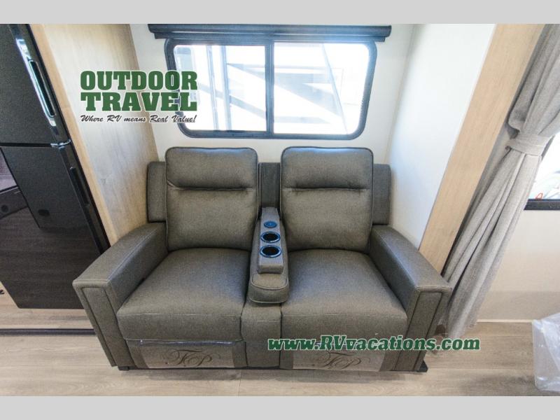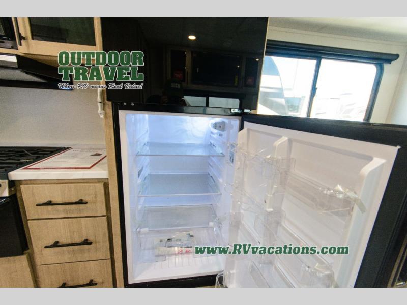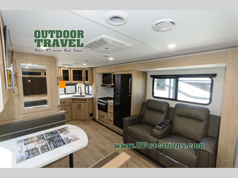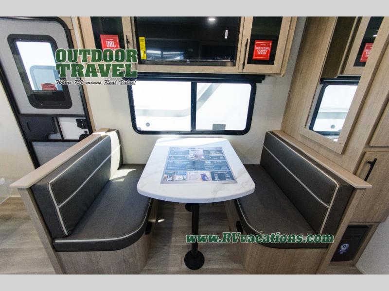 This Imagine XLS travel trailer has theater seating and a booth dinette that you can use any time you need a little break from the outdoors. If you want to come in and grab a coffee, put together a puzzle, or work on your itinerary for the week, just put up your feet and relax. You could even switch on the LED HDTV if you want a little entertainment. The front queen-size bed has a privacy curtain that you can draw to create a semi-private bedroom, and in the back of the trailer you will find the rest of your amenities, like the kitchen and the bathroom. The large slide makes it easy to enjoy spending your time indoors, but if you do want to get back outside, you can sit underneath the 18' electric awning for some shade.