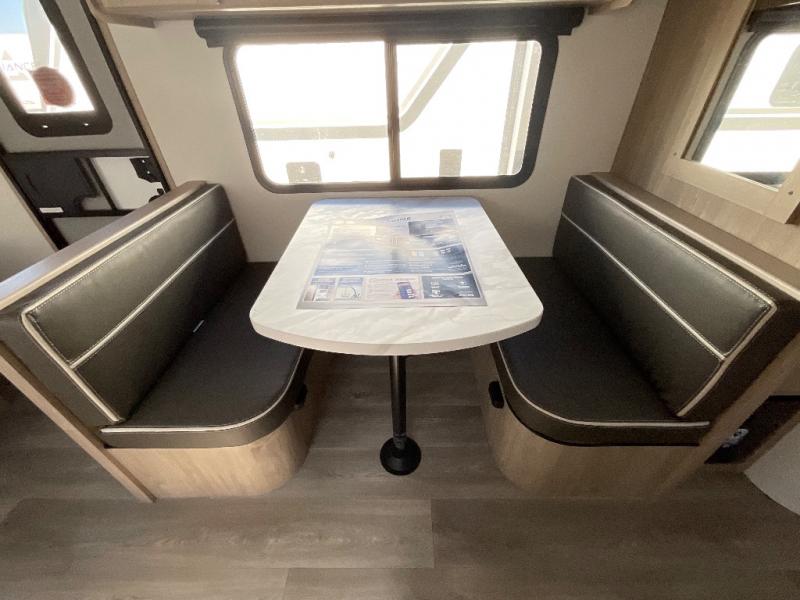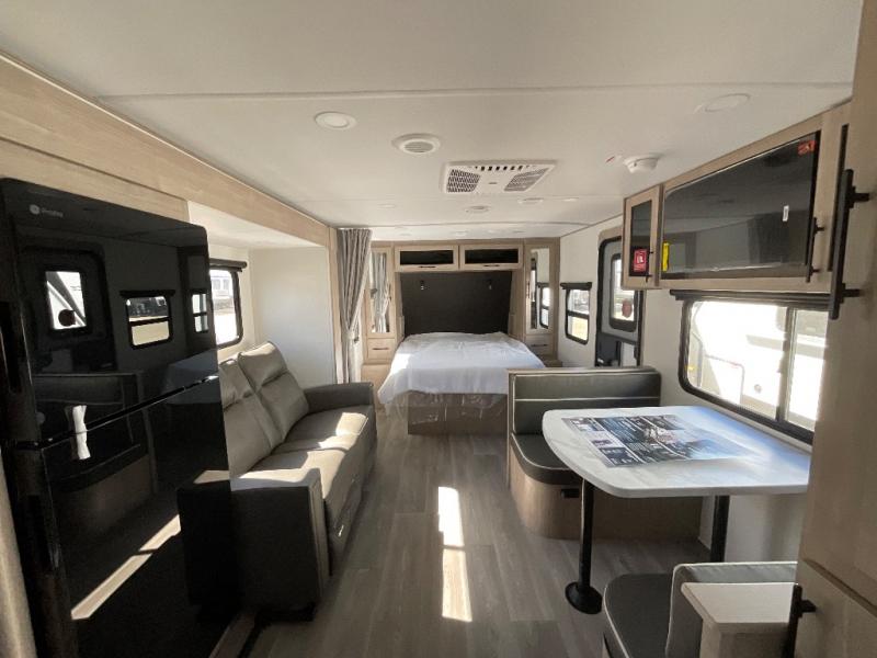 This Imagine XLS travel trailer has theater seating and a booth dinette that you can use any time you need a little break from the outdoors. If you want to come in and grab a coffee, put together a puzzle, or work on your itinerary for the week, just put up your feet and relax. You could even switch on the LED HDTV if you want a little entertainment. The front queen-size bed has a privacy curtain that you can draw to create a semi-private bedroom, and in the back of the trailer you will find the rest of your amenities, like the kitchen and the bathroom. The large slide makes it easy to enjoy spending your time indoors, but if you do want to get back outside, you can sit underneath the 18' electric awning for some shade.