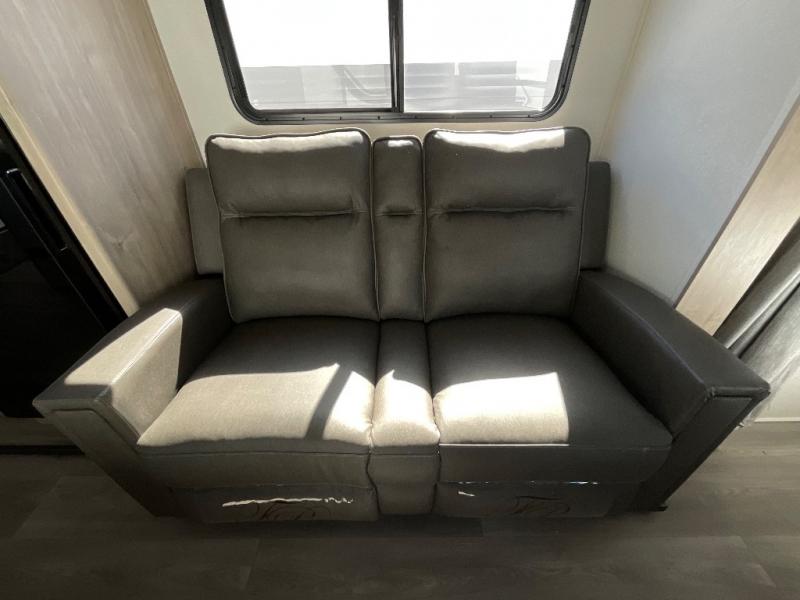 This Imagine XLS travel trailer has theater seating and a booth dinette that you can use any time you need a little break from the outdoors. If you want to come in and grab a coffee, put together a puzzle, or work on your itinerary for the week, just put up your feet and relax. You could even switch on the LED HDTV if you want a little entertainment. The front queen-size bed has a privacy curtain that you can draw to create a semi-private bedroom, and in the back of the trailer you will find the rest of your amenities, like the kitchen and the bathroom. The large slide makes it easy to enjoy spending your time indoors, but if you do want to get back outside, you can sit underneath the 18' electric awning for some shade.
