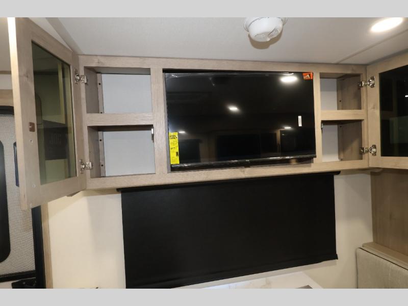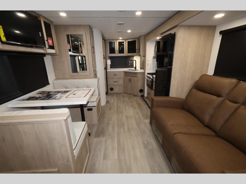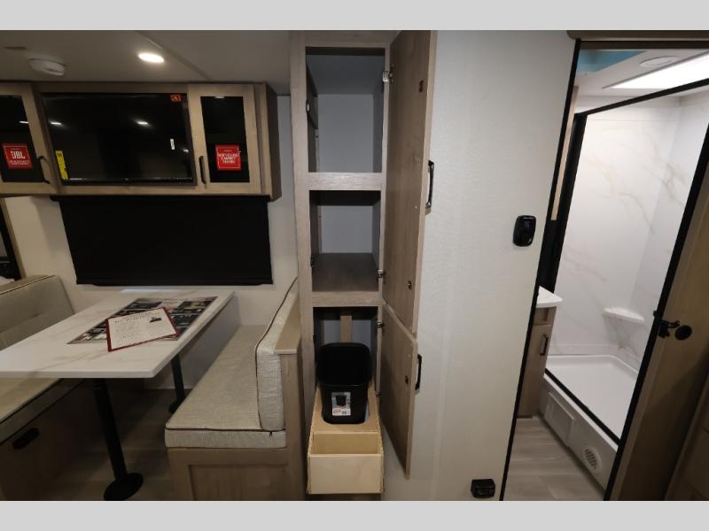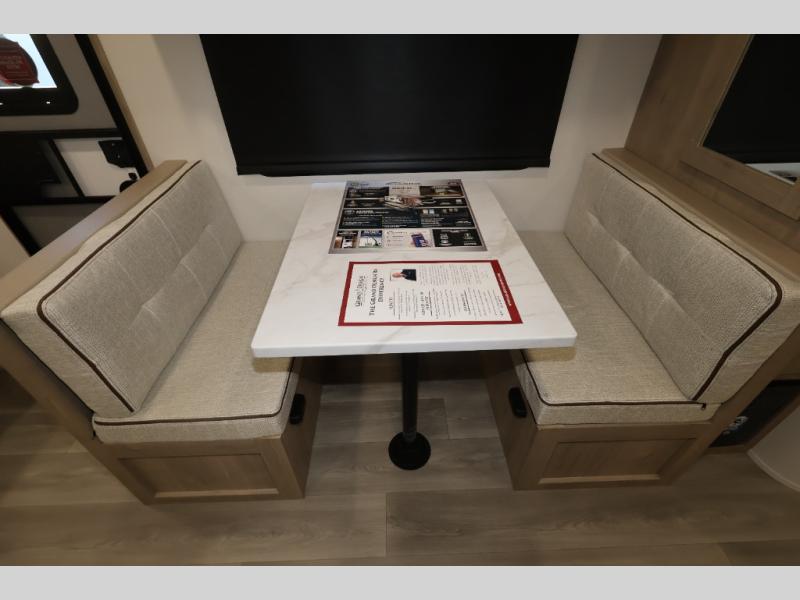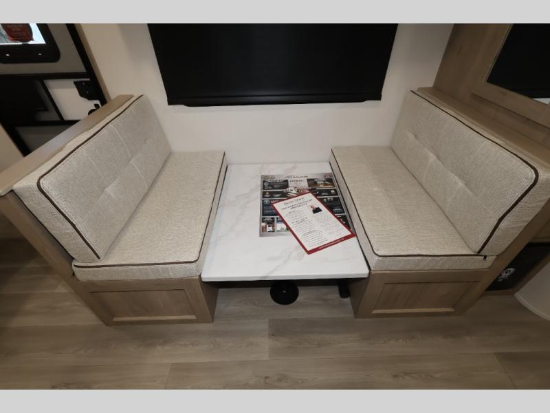 This Imagine XLS travel trailer has theater seating and a booth dinette that you can use any time you need a little break from the outdoors. If you want to come in and grab a coffee, put together a puzzle, or work on your itinerary for the week, just put up your feet and relax. You could even switch on the LED HDTV if you want a little entertainment. The front queen-size bed has a privacy curtain that you can draw to create a semi-private bedroom, and in the back of the trailer you will find the rest of your amenities, like the kitchen and the bathroom. The large slide makes it easy to enjoy spending your time indoors, but if you do want to get back outside, you can sit underneath the 18' electric awning for some shade.