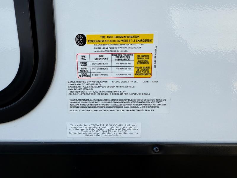 Let your imagination run wild with the possibilities that the Grand Design Imagine XLS travel trailer can provide! The Imagine XLS has been built with oversized tank capacities, an extra-large 2" fresh water drain valve, a ducted A/C system, a power tongue jack, and a heated and enclosed underbelly with suspended tanks. There is a designated heat duct to the subfloor and a residential ductless heating system throughout. For outdoor adventures, the electric awning with LED lights will enable you to stay protected, and the Tuff-Ply pass-thru flooring will withstand your adventures. You will also love the XLS Solar Package that comes with a 200W roof mounted solar panel, a 30 Amp charge controller, a 12V 10 cu. ft. refrigerator, and roof mounted quick connect plugs!