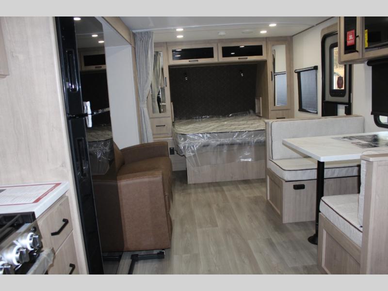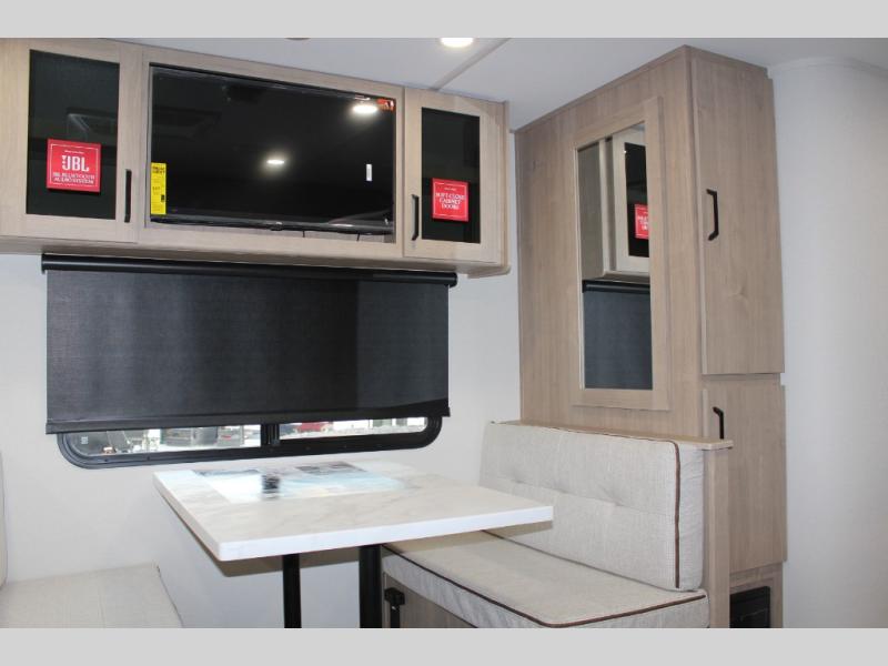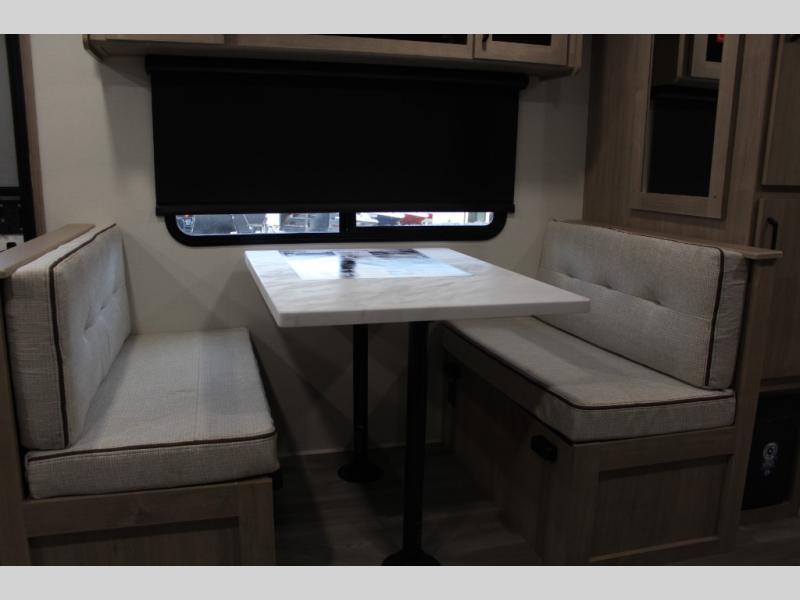 This Imagine XLS travel trailer has theater seating and a booth dinette that you can use any time you need a little break from the outdoors. If you want to come in and grab a coffee, put together a puzzle, or work on your itinerary for the week, just put up your feet and relax. You could even switch on the LED HDTV if you want a little entertainment. The front queen-size bed has a privacy curtain that you can draw to create a semi-private bedroom, and in the back of the trailer you will find the rest of your amenities, like the kitchen and the bathroom. The large slide makes it easy to enjoy spending your time indoors, but if you do want to get back outside, you can sit underneath the 18' electric awning for some shade.
