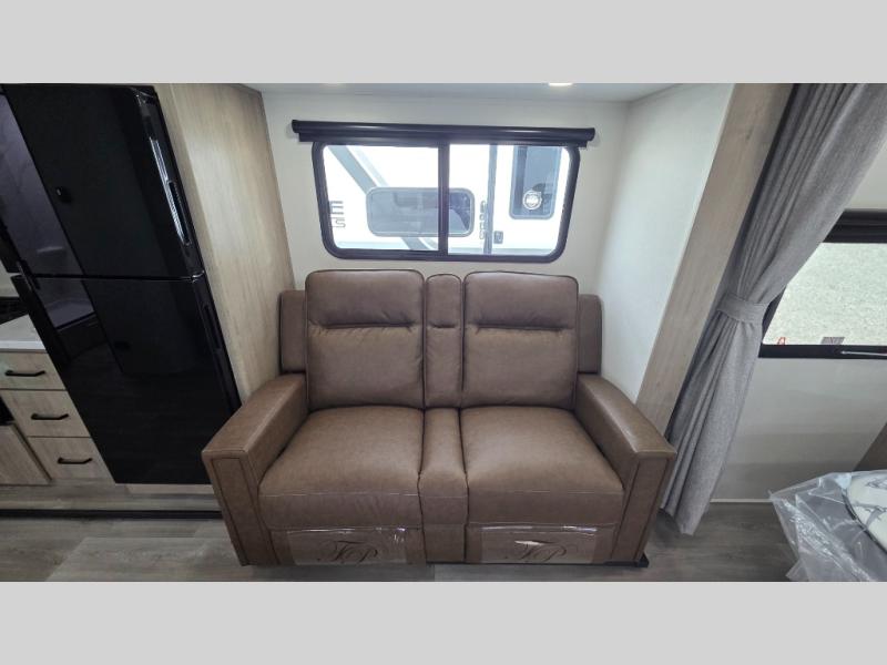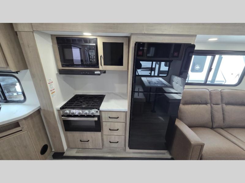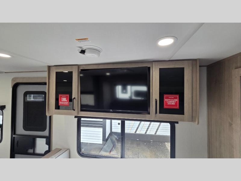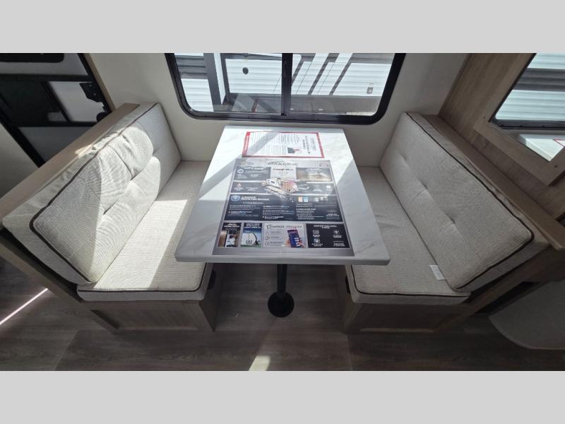 This Imagine XLS travel trailer has theater seating and a booth dinette that you can use any time you need a little break from the outdoors. If you want to come in and grab a coffee, put together a puzzle, or work on your itinerary for the week, just put up your feet and relax. You could even switch on the LED HDTV if you want a little entertainment. The front queen-size bed has a privacy curtain that you can draw to create a semi-private bedroom, and in the back of the trailer you will find the rest of your amenities, like the kitchen and the bathroom. The large slide makes it easy to enjoy spending your time indoors, but if you do want to get back outside, you can sit underneath the 18' electric awning for some shade.