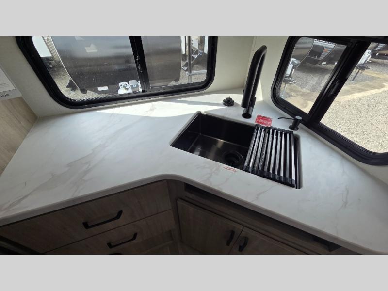 Let your imagination run wild with the possibilities that the Grand Design Imagine XLS travel trailer can provide! The Imagine XLS has been built with oversized tank capacities, an extra-large 2" fresh water drain valve, a ducted A/C system, a power tongue jack, and a heated and enclosed underbelly with suspended tanks. There is a designated heat duct to the subfloor and a residential ductless heating system throughout. For outdoor adventures, the electric awning with LED lights will enable you to stay protected, and the Tuff-Ply pass-thru flooring will withstand your adventures. You will also love the XLS Solar Package that comes with a 200W roof mounted solar panel, a 30 Amp charge controller, a 12V 10 cu. ft. refrigerator, and roof mounted quick connect plugs!