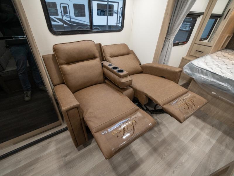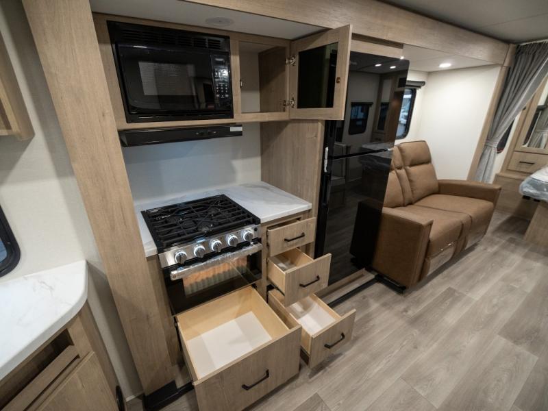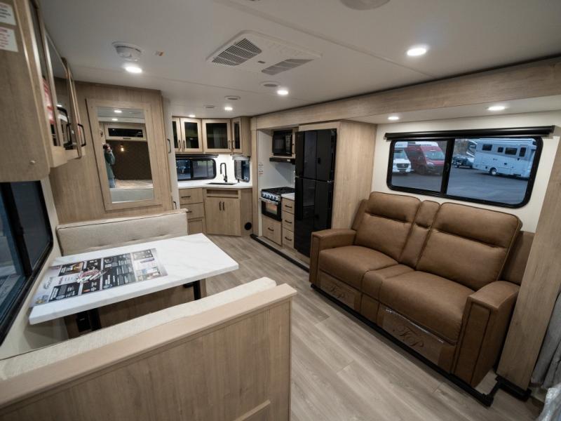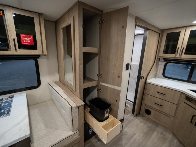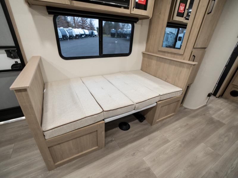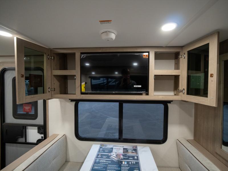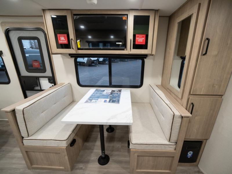 This Imagine XLS travel trailer has theater seating and a booth dinette that you can use any time you need a little break from the outdoors. If you want to come in and grab a coffee, put together a puzzle, or work on your itinerary for the week, just put up your feet and relax. You could even switch on the LED HDTV if you want a little entertainment. The front queen-size bed has a privacy curtain that you can draw to create a semi-private bedroom, and in the back of the trailer you will find the rest of your amenities, like the kitchen and the bathroom. The large slide makes it easy to enjoy spending your time indoors, but if you do want to get back outside, you can sit underneath the 18' electric awning for some shade.