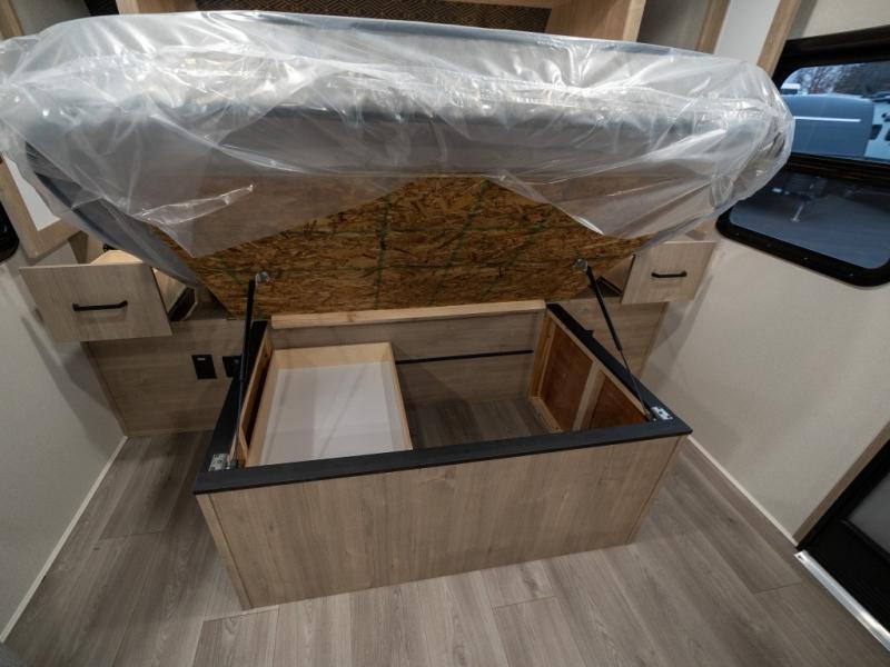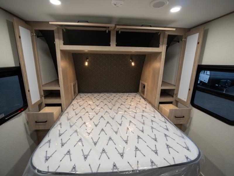 Let your imagination run wild with the possibilities that the Grand Design Imagine XLS travel trailer can provide! The Imagine XLS has been built with oversized tank capacities, an extra-large 2" fresh water drain valve, a ducted A/C system, a power tongue jack, and a heated and enclosed underbelly with suspended tanks. There is a designated heat duct to the subfloor and a residential ductless heating system throughout. For outdoor adventures, the electric awning with LED lights will enable you to stay protected, and the Tuff-Ply pass-thru flooring will withstand your adventures. You will also love the XLS Solar Package that comes with a 200W roof mounted solar panel, a 30 Amp charge controller, a 12V 10 cu. ft. refrigerator, and roof mounted quick connect plugs!