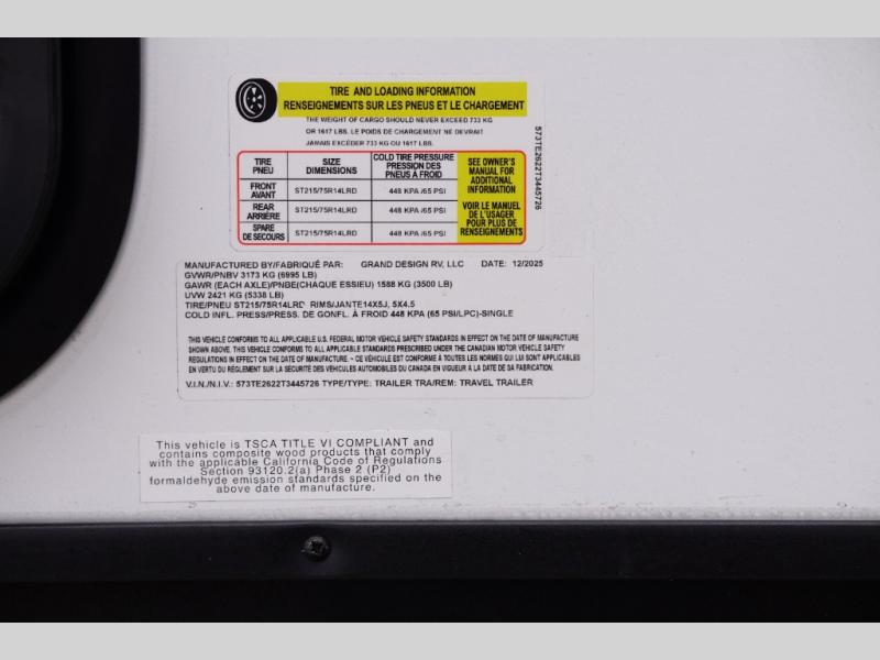 Let your imagination run wild with the possibilities that the Grand Design Imagine XLS travel trailer can provide! The Imagine XLS has been built with oversized tank capacities, an extra-large 2" fresh water drain valve, a ducted A/C system, a power tongue jack, and a heated and enclosed underbelly with suspended tanks. There is a designated heat duct to the subfloor and a residential ductless heating system throughout. For outdoor adventures, the electric awning with LED lights will enable you to stay protected, and the Tuff-Ply pass-thru flooring will withstand your adventures. You will also love the XLS Solar Package that comes with a 200W roof mounted solar panel, a 30 Amp charge controller, a 12V 10 cu. ft. refrigerator, and roof mounted quick connect plugs!