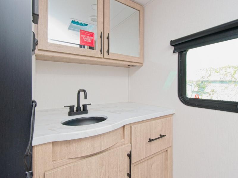 Compact yet spacious, the 22RBE is ideal for couples seeking a lightweight travel trailer that doesn’t compromise on features, comfort, or style. Hit the road and imagine the possibilities.