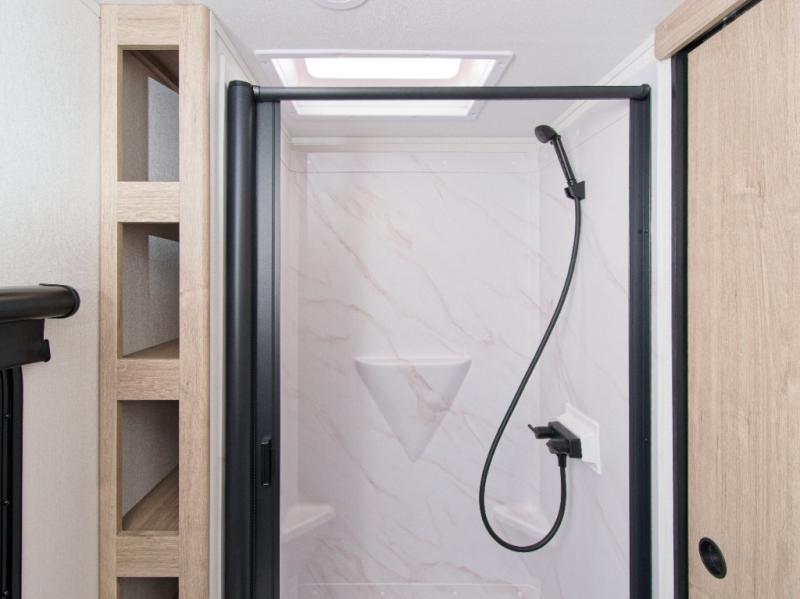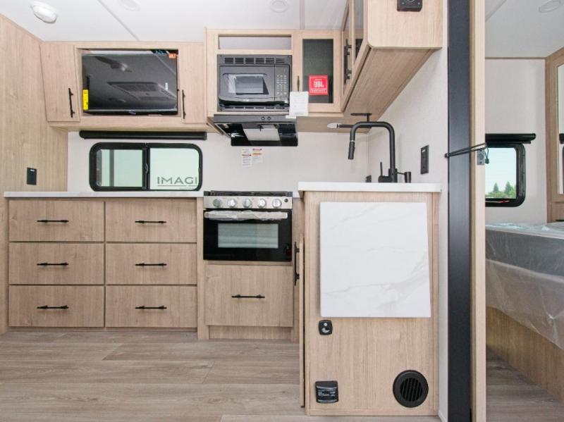 Designed with couples in mind, the Imagine XLS 22RBE offers a perfect blend of comfort, style, and functionality in a compact footprint. Enjoy the privacy of a dedicated bedroom featuring a walk-around queen-size bed, while the full rear bathroom includes a residential walk-in shower for a spa-like experience on the road.