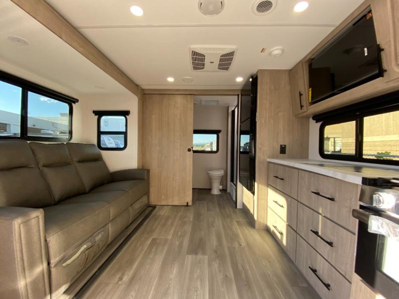Let your imagination run wild with the possibilities that the Grand Design Imagine XLS travel trailer can provide! The Imagine XLS has been built with oversized tank capacities, an extra-large 2" fresh water drain valve, a ducted A/C system, a power tongue jack, and a heated and enclosed underbelly with suspended tanks. There is a designated heat duct to the subfloor and a residential ductless heating system throughout. For outdoor adventures, the electric awning with LED lights will enable you to stay protected, and the Tuff-Ply pass-thru flooring will withstand your many adventures. You will also love the XLS Solar Package that comes with a 200W roof mounted solar panel, a 40 Amp charge controller, a 12V 10 cu. ft. refrigerator, and roof mounted quick connect plugs!
