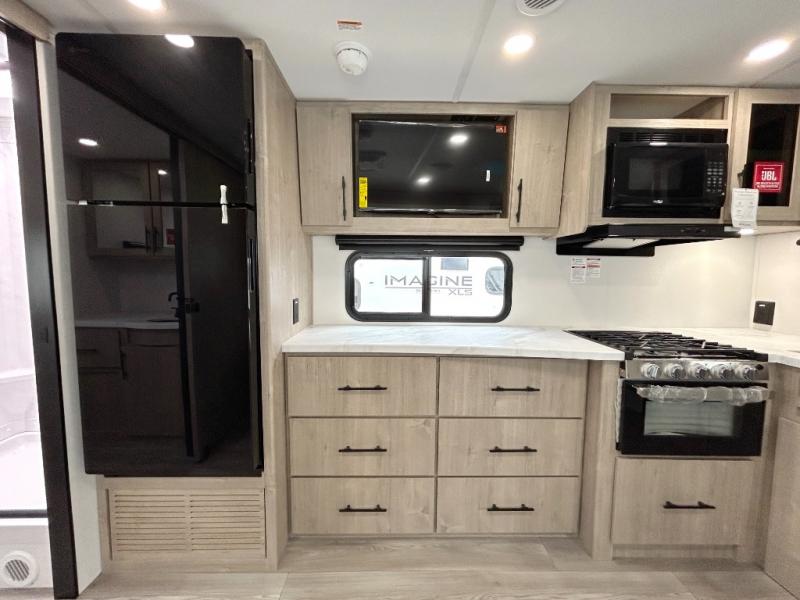 This Imagine XLS travel trailer was constructed just for you and your significant other or camping buddy! It has all of the essentials a couple could need, like a full rear bathroom with a residential walk-in shower, a theater dinette with a removable table where you can eat your meals, a full kitchen with a microwave and three-burner range with an oven, and a private bedroom with a walk-around queen-size bed so that both of you have your own side. There are a couple of extras that will make your time away even more special, like the LED HDTV, flip-up countertop extension, and exterior spray port!