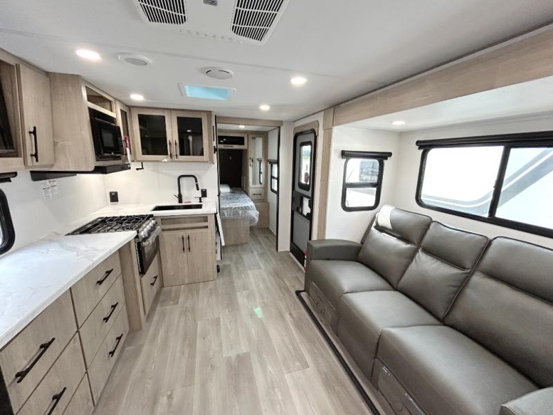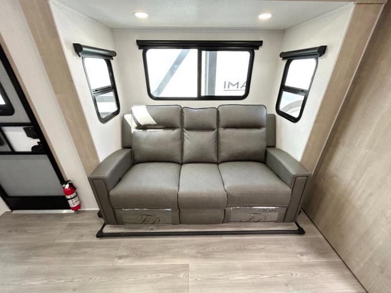 Let your imagination run wild with the possibilities that the Grand Design Imagine XLS travel trailer can provide! The Imagine XLS has been built with oversized tank capacities, an extra-large 2" fresh water drain valve, a ducted A/C system, a power tongue jack, and a heated and enclosed underbelly with suspended tanks. There is a designated heat duct to the subfloor and a residential ductless heating system throughout. For outdoor adventures, the electric awning with LED lights will enable you to stay protected, and the Tuff-Ply pass-thru flooring will withstand your many adventures. You will also love the XLS Solar Package that comes with a 200W roof mounted solar panel, a 40 Amp charge controller, a 12V 10 cu. ft. refrigerator, and roof mounted quick connect plugs!