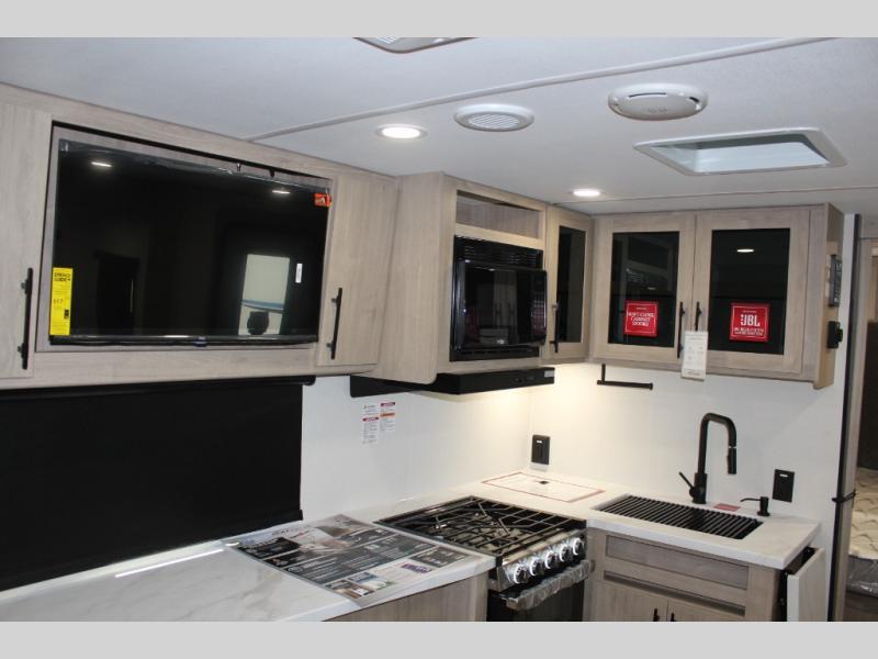 This Imagine XLS travel trailer was constructed just for you and your significant other or camping buddy! It has all of the essentials a couple could need, like a full rear bathroom with a residential walk-in shower, a theater dinette with a removable table where you can eat your meals, a full kitchen with a microwave and three-burner range with an oven, and a private bedroom with a walk-around queen-size bed so that both of you have your own side. There are a couple of extras that will make your time away even more special, like the LED HDTV, flip-up countertop extension, and exterior spray port!