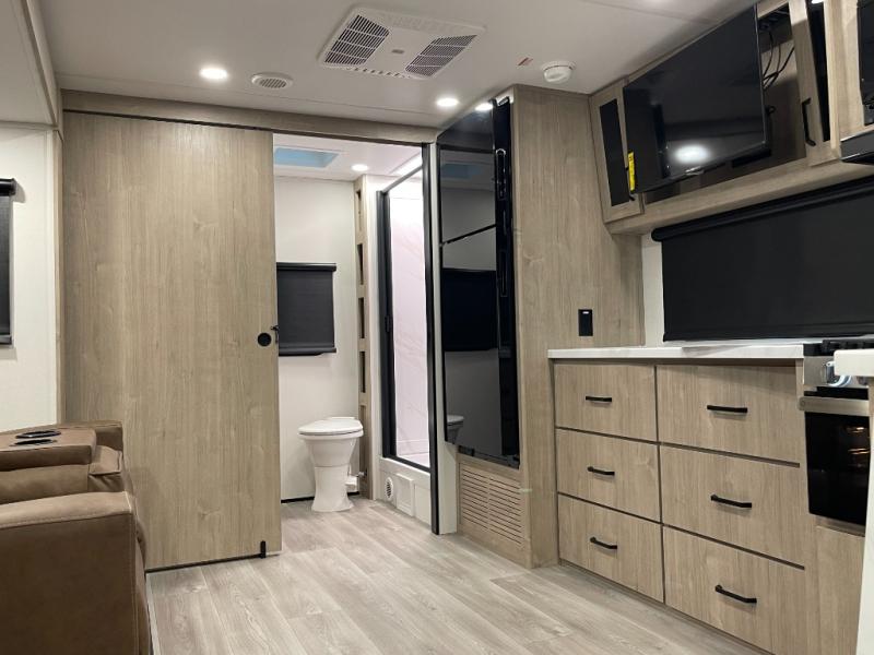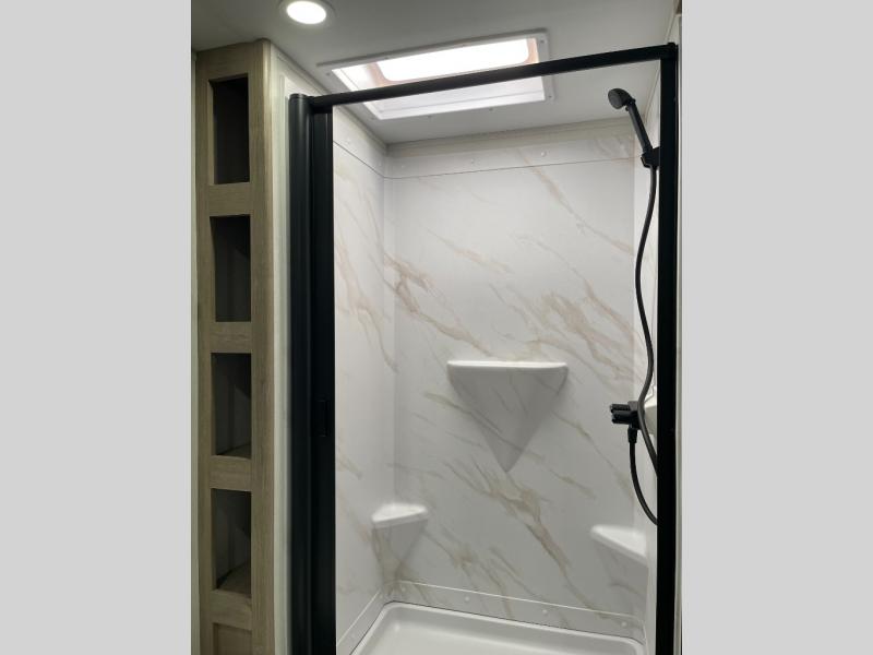 Let your imagination run wild with the possibilities that the Grand Design Imagine XLS travel trailer can provide! The Imagine XLS has been built with oversized tank capacities, an extra-large 2" fresh water drain valve, a ducted A/C system, a power tongue jack, and a heated and enclosed underbelly with suspended tanks. There is a designated heat duct to the subfloor and a residential ductless heating system throughout. For outdoor adventures, the electric awning with LED lights will enable you to stay protected, and the Tuff-Ply pass-thru flooring will withstand your adventures. You will also love the XLS Solar Package that comes with a 200W roof mounted solar panel, a 30 Amp charge controller, a 12V 10 cu. ft. refrigerator, and roof mounted quick connect plugs!