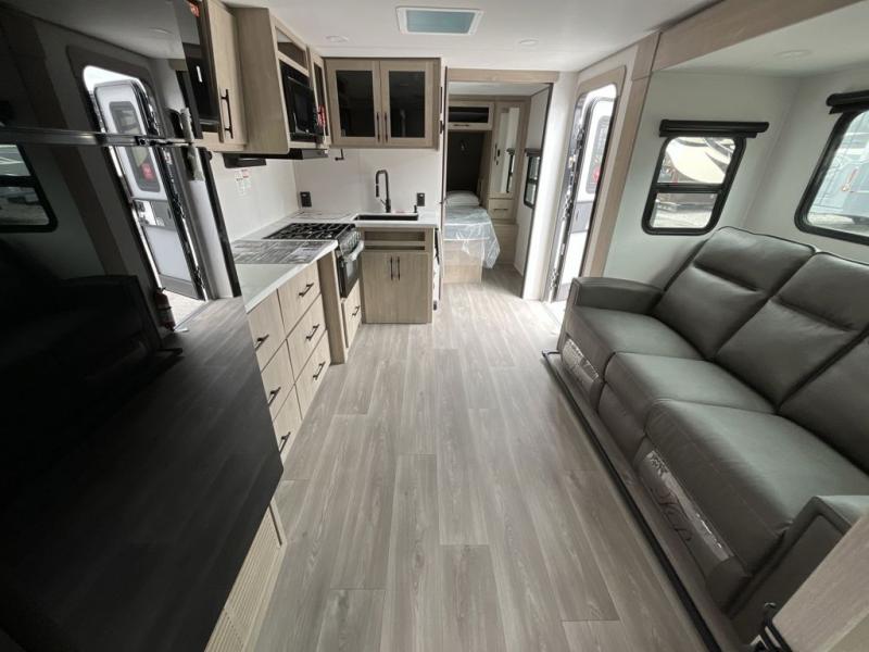 Let your imagination run wild with the possibilities that the Grand Design Imagine XLS travel trailer can provide! The Imagine XLS has been built with oversized tank capacities, an extra-large 2" fresh water drain valve, a ducted A/C system, a power tongue jack, and a heated and enclosed underbelly with suspended tanks. There is a designated heat duct to the subfloor and a residential ductless heating system throughout. For outdoor adventures, the electric awning with LED lights will enable you to stay protected, and the Tuff-Ply pass-thru flooring will withstand your adventures. You will also love the XLS Solar Package that comes with a 200W roof mounted solar panel, a 30 Amp charge controller, a 12V 10 cu. ft. refrigerator, and roof mounted quick connect plugs!