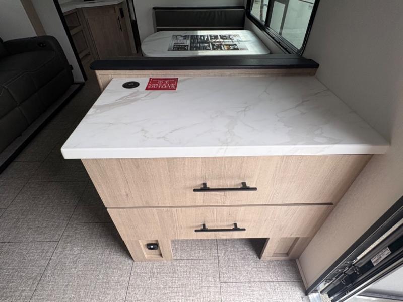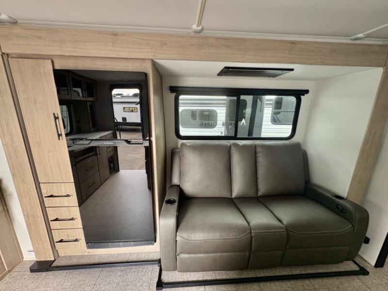 Treat yourself to a weekend of fun in this Imagine XLS travel trailer! Whether it's just you and your spouse, or you've chosen to bring along a group of friends, this trailer will meet the need. The front bedroom can sleep two people on the walk-around queen-size bed. The bedroom is quite functional because it not only contains the second exterior entry door, but it also has a private entrance into the walk-through bathroom since it is located on the other side of the bathroom. The booth dinette is functional too because it can transform from a dining location into a sleeping location, and the theater seating is directly across from the LED TV for easy viewing.
