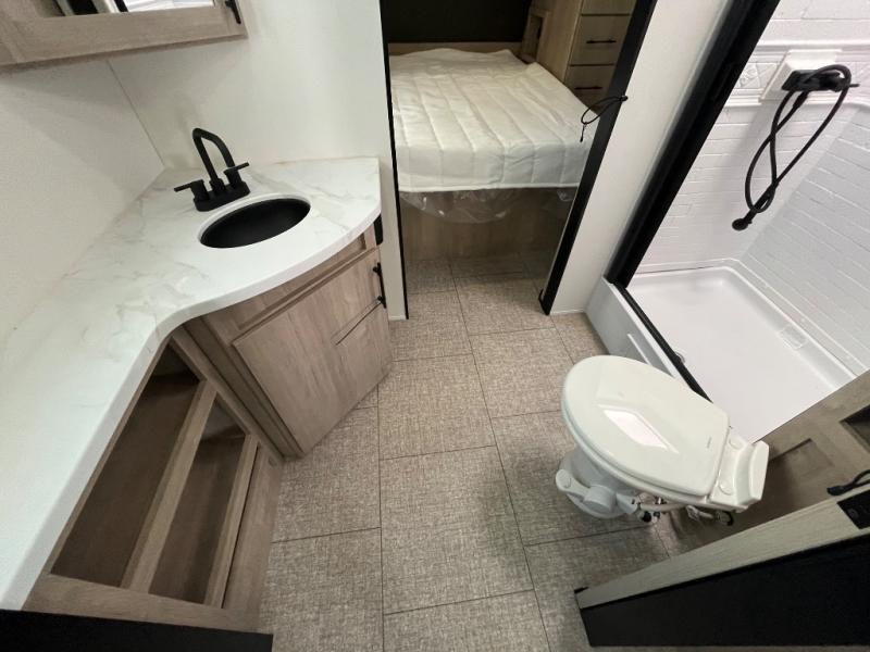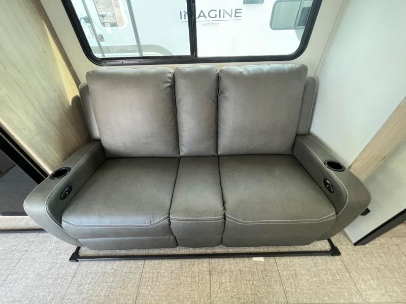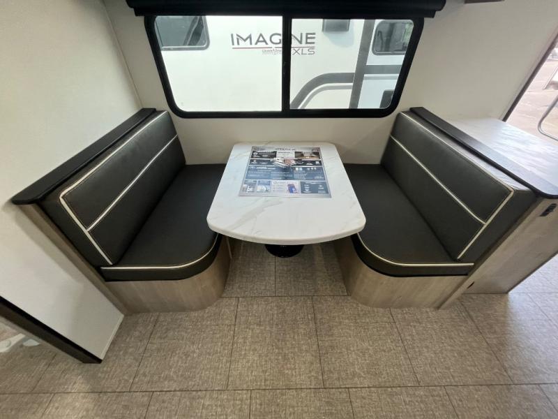 Treat yourself to a weekend of fun in this Imagine XLS travel trailer! Whether it's just you and your spouse, or you've chosen to bring along a group of friends, this trailer will meet the need. The front bedroom can sleep two people on the walk-around queen-size bed. The bedroom is quite functional because it not only contains the second exterior entry door, but it also has a private entrance into the walk-through bathroom since it is located on the other side of the bathroom. The booth dinette is functional too because it can transform from a dining location into a sleeping location, and the theater seating is directly across from the LED TV for easy viewing.