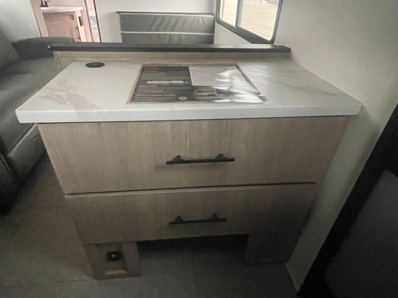 Let your imagination run wild with the possibilities that the Grand Design Imagine XLS travel trailer can provide! The Imagine XLS has been built with oversized tank capacities, an extra-large 2" fresh water drain valve, a ducted A/C system, a power tongue jack, and a heated and enclosed underbelly with suspended tanks. There is a designated heat duct to the subfloor and a residential ductless heating system throughout. For outdoor adventures, the electric awning with LED lights will enable you to stay protected, and the Tuff-Ply pass-thru flooring will withstand your many adventures. You will also love the XLS Solar Package that comes with a 200W roof mounted solar panel, a 40 Amp charge controller, a 12V 10 cu. ft. refrigerator, and roof mounted quick connect plugs!