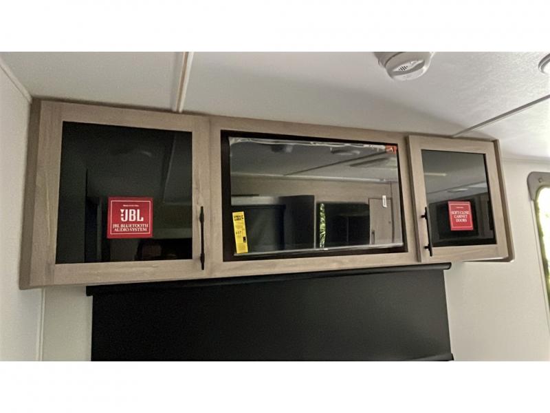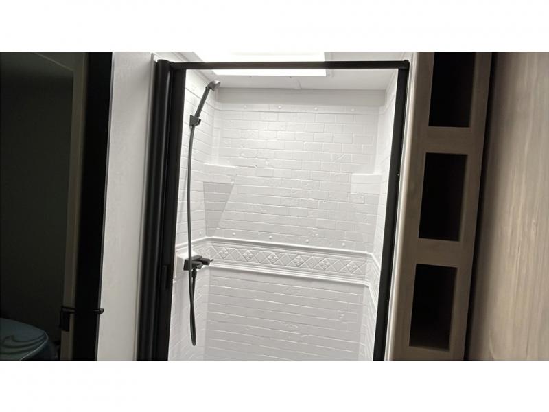 Treat yourself to a weekend of fun in this Imagine XLS travel trailer! Whether it's just you and your spouse, or you've chosen to bring along a group of friends, this trailer will meet the need. The front bedroom can sleep two people on the walk-around queen-size bed. The bedroom is quite functional because it not only contains the second exterior entry door, but it also has a private entrance into the walk-through bathroom since it is located on the other side of the bathroom. The booth dinette is functional too because it can transform from a dining location into a sleeping location, and the theater seating is directly across from the LED TV for easy viewing.