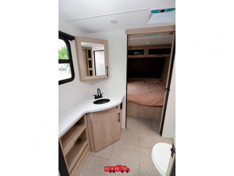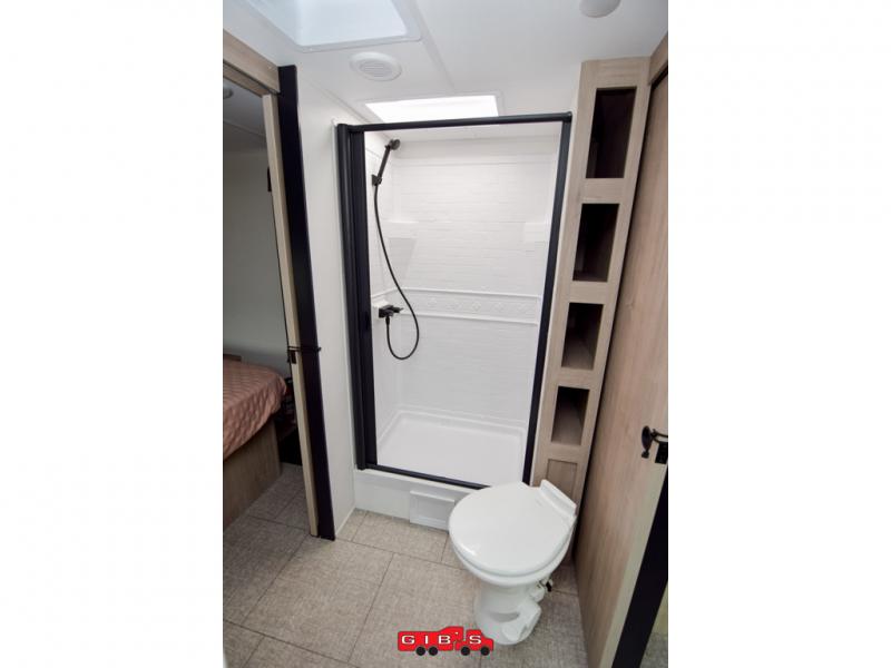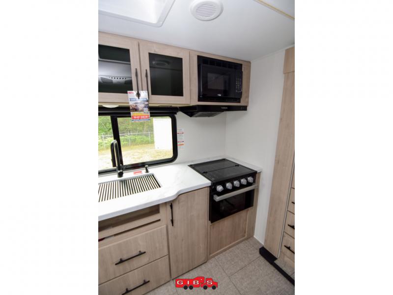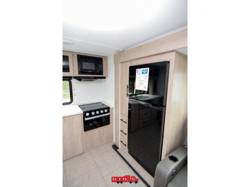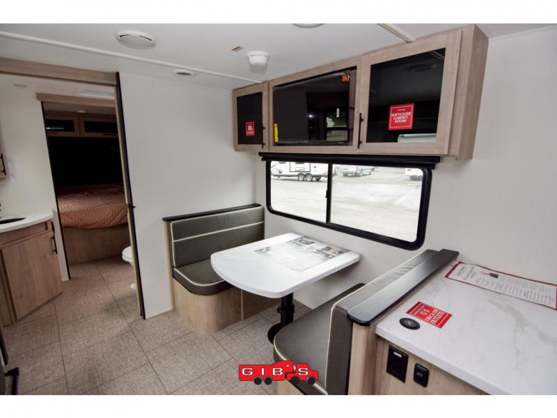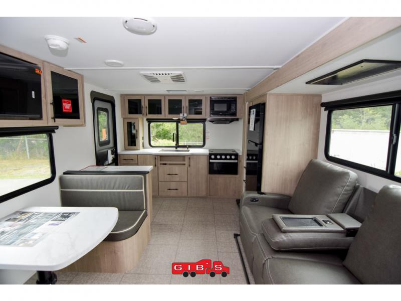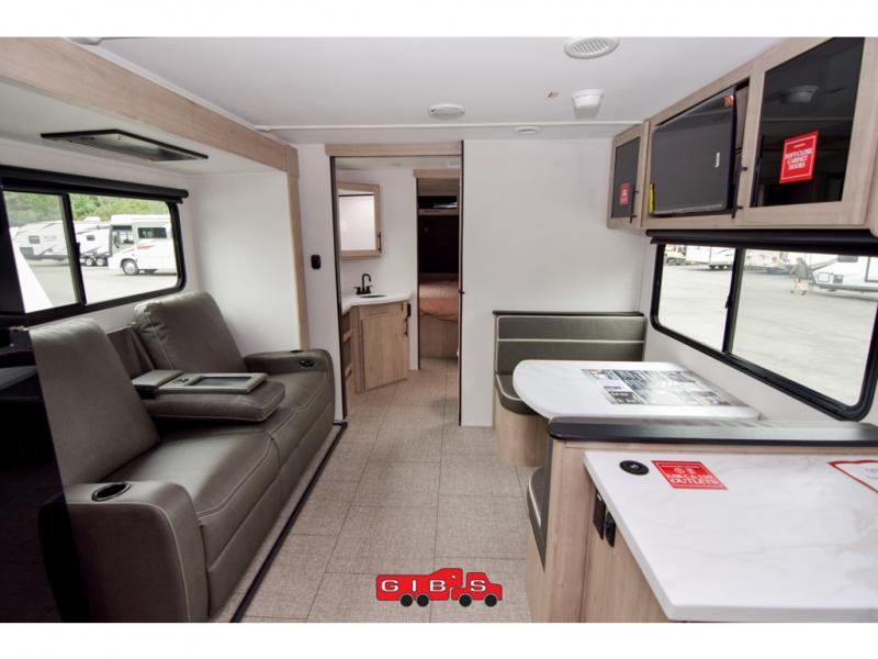 Treat yourself to a weekend of fun in this Imagine XLS travel trailer! Whether it's just you and your spouse, or you've chosen to bring along a group of friends, this trailer will meet the need. The front bedroom can sleep two people on the walk-around queen-size bed. The bedroom is quite functional because it not only contains the second exterior entry door, but it also has a private entrance into the walk-through bathroom since it is located on the other side of the bathroom. The booth dinette is functional too because it can transform from a dining location into a sleeping location, and the theater seating is directly across from the LED TV for easy viewing.