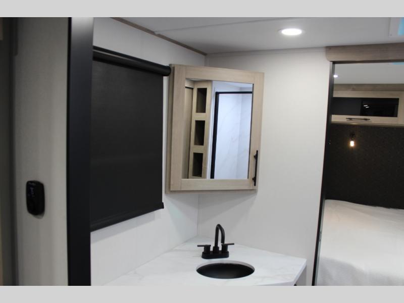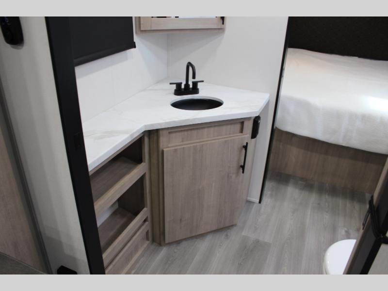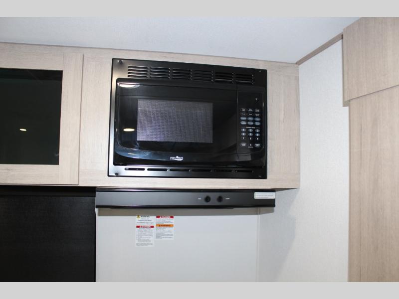 Treat yourself to a weekend of fun in this Imagine XLS travel trailer! Whether it's just you and your spouse, or you've chosen to bring along a group of friends, this trailer will meet the need. The front bedroom can sleep two people on the walk-around queen-size bed. The bedroom is quite functional because it not only contains the second exterior entry door, but it also has a private entrance into the walk-through bathroom since it is located on the other side of the bathroom. The booth dinette is functional too because it can transform from a dining location into a sleeping location, and the theater seating is directly across from the LED TV for easy viewing.